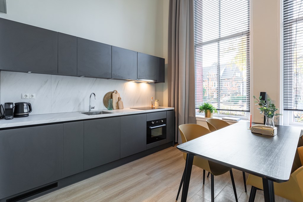 These apartments feature a beautiful open kitchen and dining area, comfortable living space,.