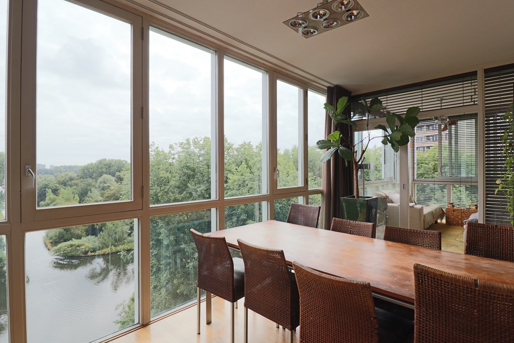 Spacious and furnished 3-bedroom penthouse apartment of 166m2 with private parking, just outside the ring A10 of Amsterdam with the most fantastic view! There are 3 bedrooms and it has a very cosy extra room in the livingroom with beautifull views. The apartment is centrally located in a quiet neighborhood and close to shopping center and supermarket. Great connection to the ring A10 and public transport, The building is from 2006 with elevator.
