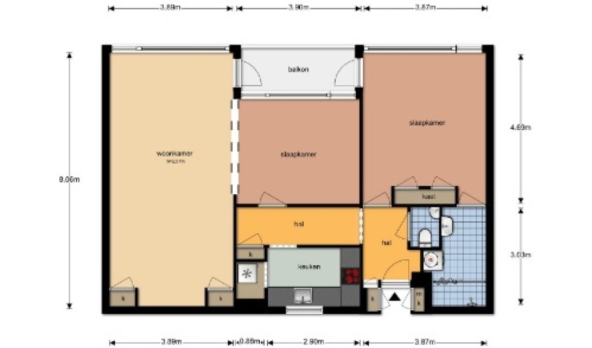 87m² - 2 rooms