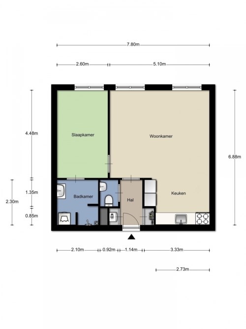 53m² - 2 rooms