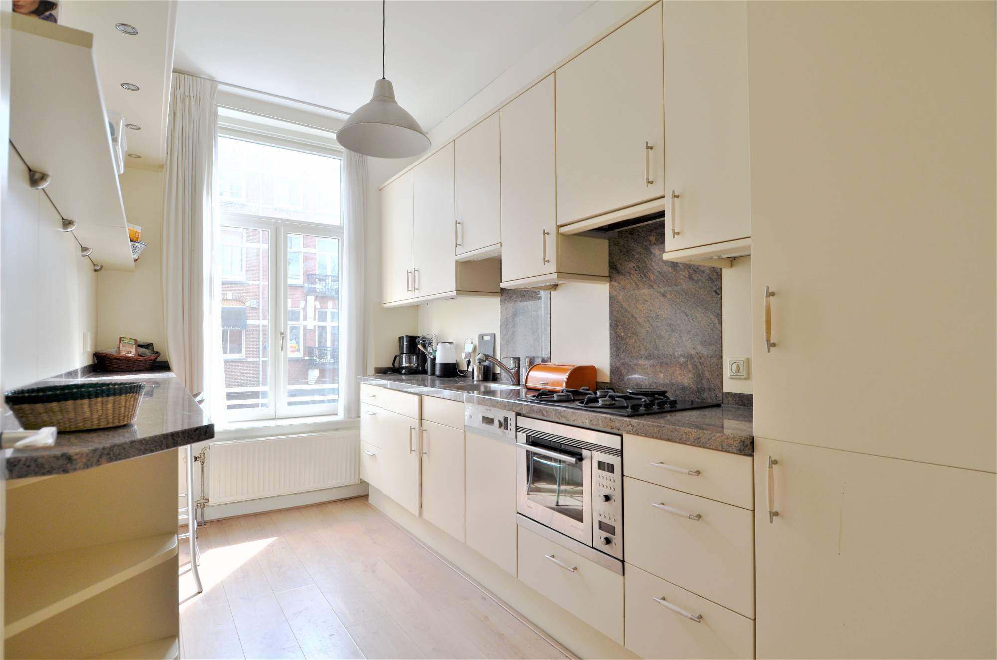 Super centrally located apartment (approx. 80m2) in a stately building in one of the chicest districts of Amsterdam Oud-Zuid. The apartment has a spacious living room, a separate kitchen, a compact bathroom, a very spacious bedroom, a compact balcony of approx. 2m2 and a shared terrace at the rear of approx. 20m2.