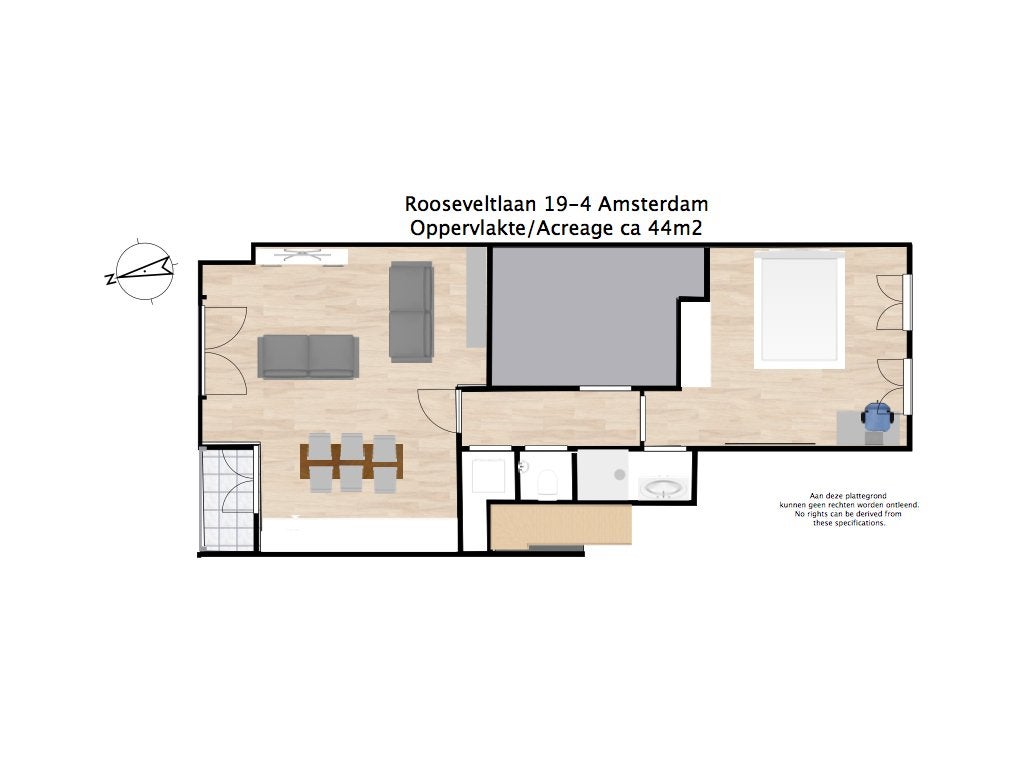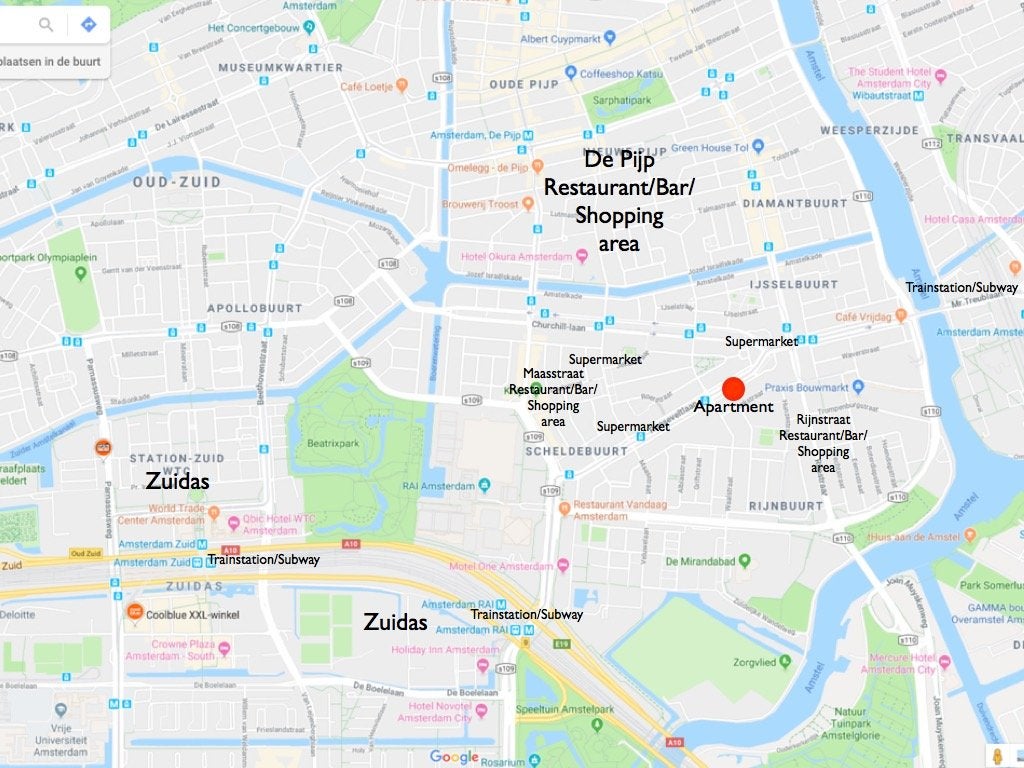 The apartment is located in the 'Rivierenbuurt', in the Rooseveltlaan and close to 'De Pijp', with closeby several supermarkets, butcheries, bakeries and restaurants.