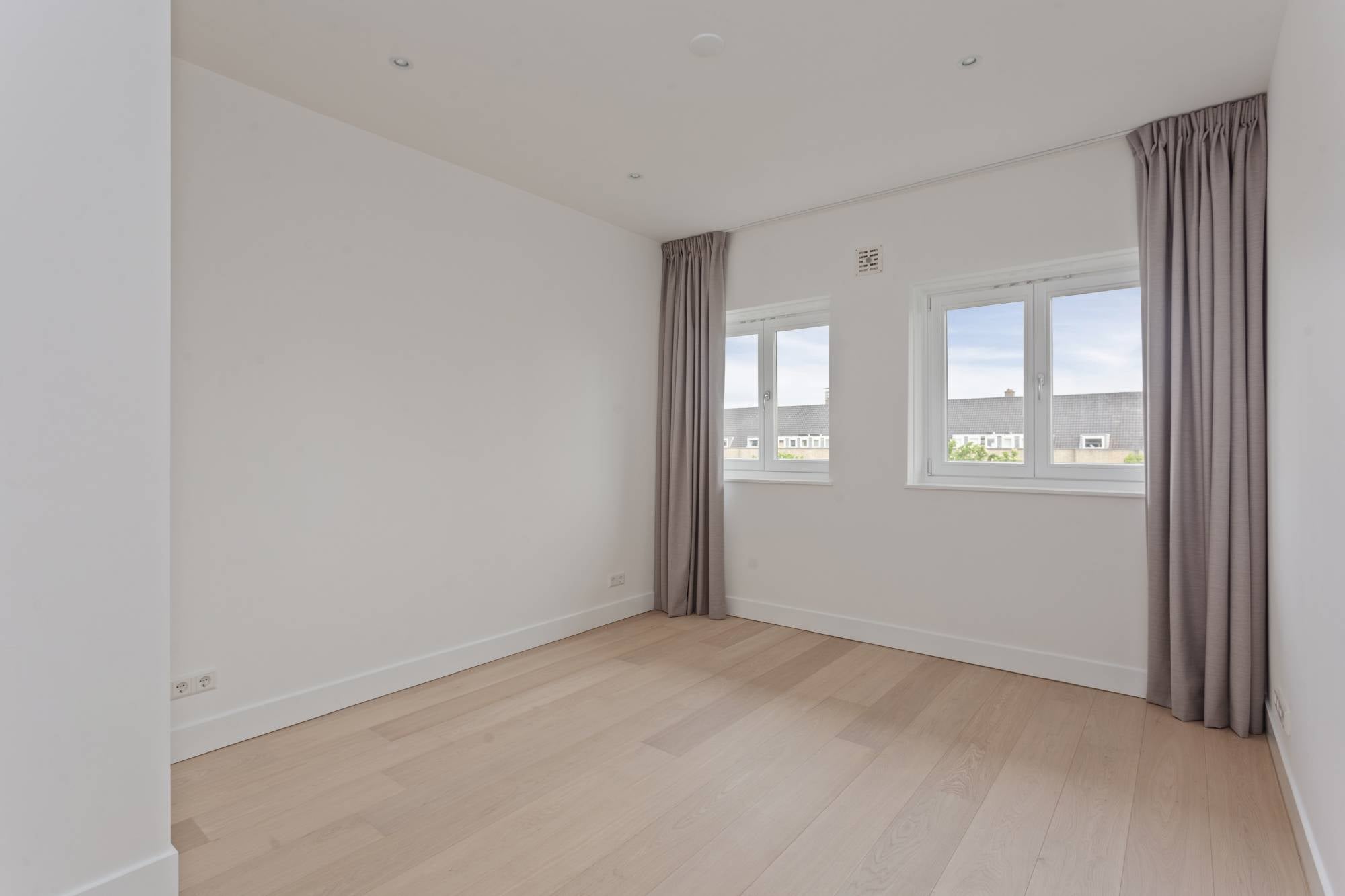 The house is unfurnished and equipped with kitchen with built-in appliances, a beautiful wooden floor and window coverings,