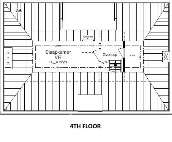 A second internal staircase takes you to the fourth floor, where a bright second bedroom with a single bed is located.