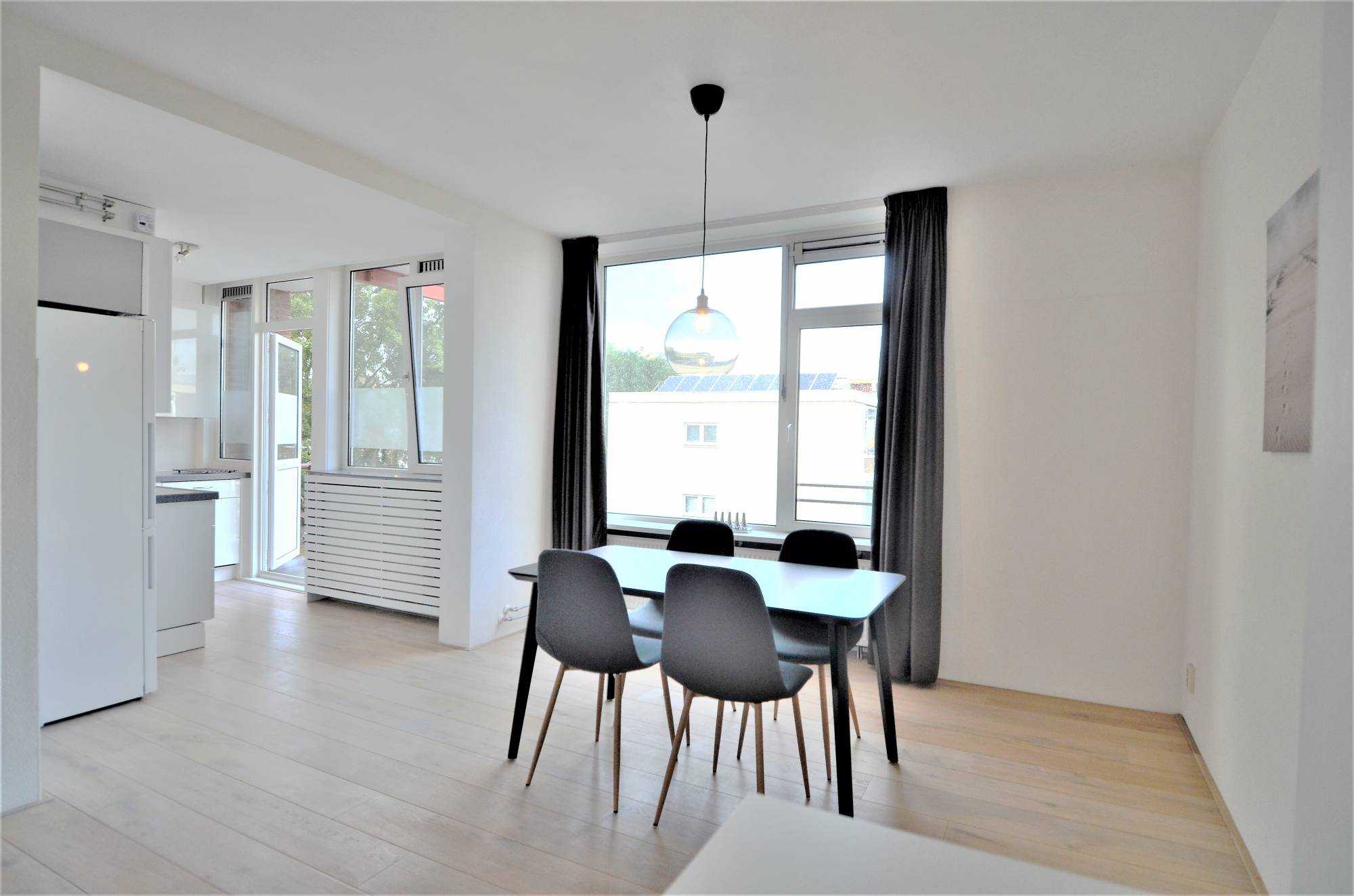 * Tight open kitchen at the front, equipped with complete appliances, with access to the second balcony facing north with beautiful views of the Zuidas.