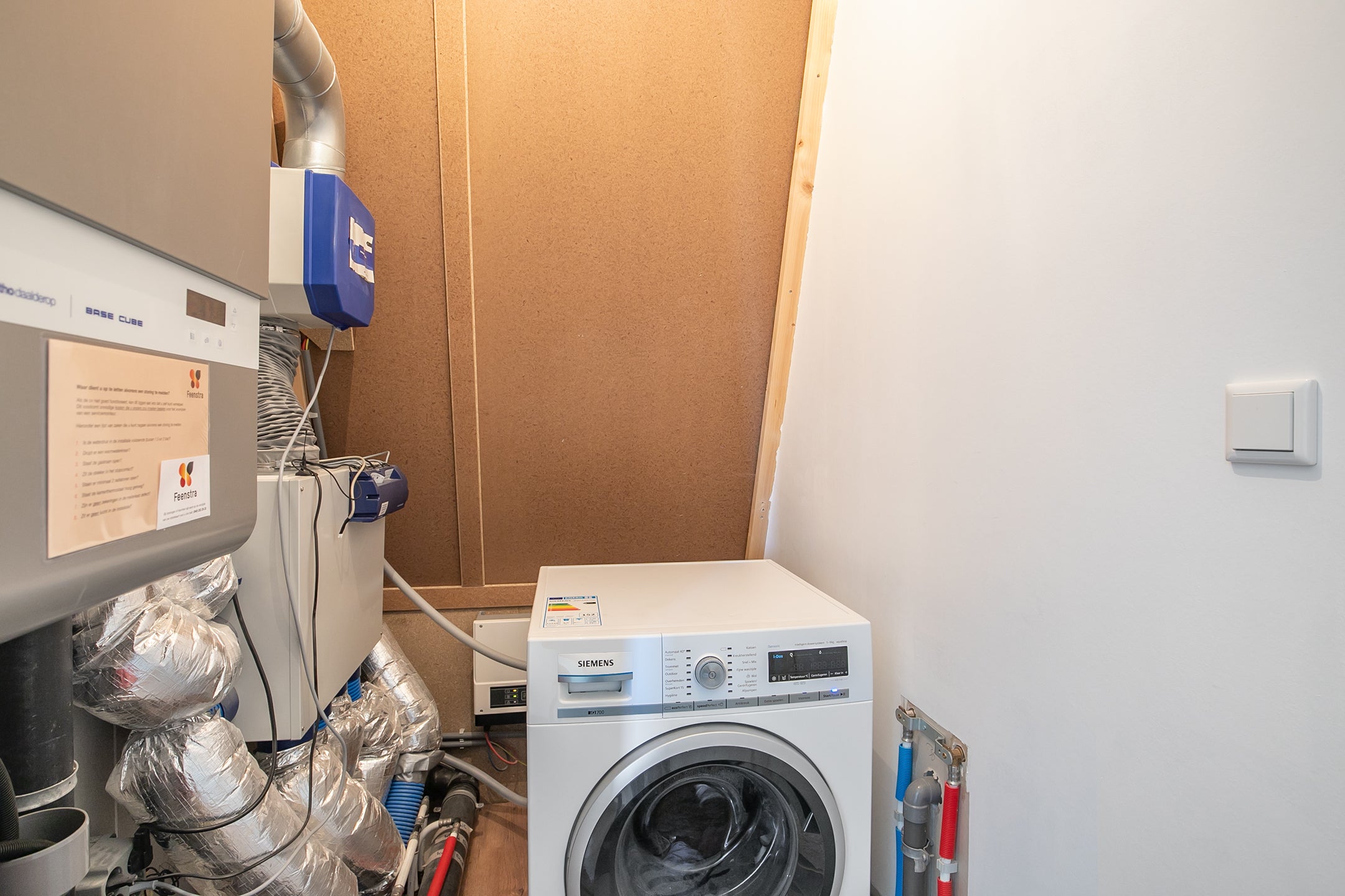 Through the entrance house, access to the hall with modern tiled toilet and fountain, after which access to the spacious L-shaped living room equipped with modern furniture and a beautiful PVC floor with underfloor heating. The modern open kitchen is fully equipped with all modern appliances including a Quooker, dishwasher, induction hob, extractor, smart oven with WiFi connection, Siemens refrigerator and sufficient storage space
