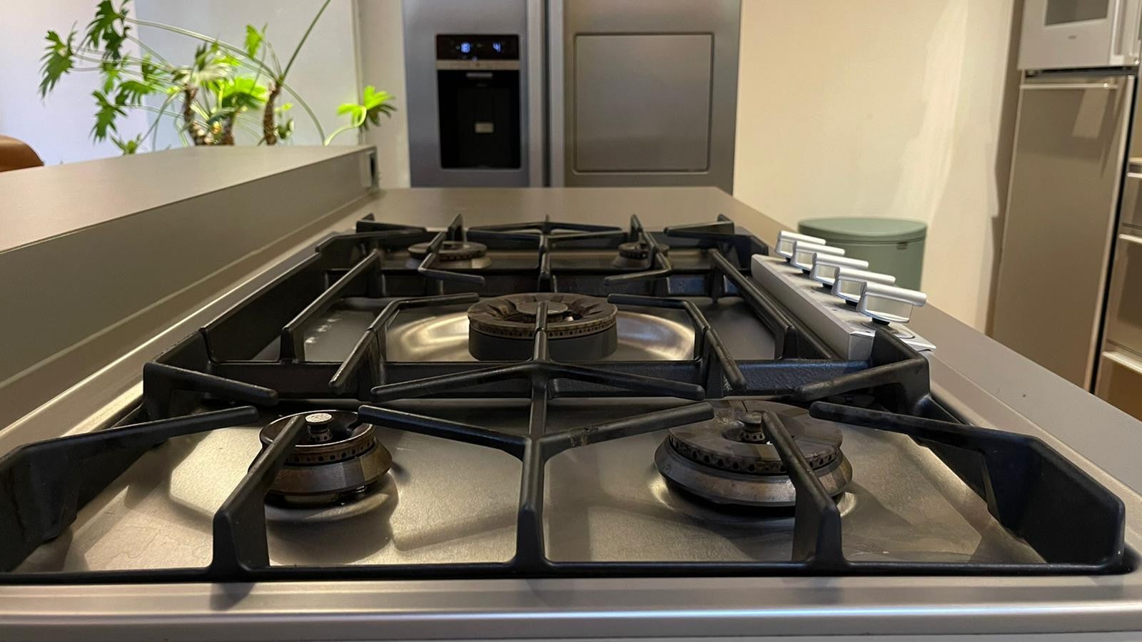-Spacious, luxurious Bulthaup kitchen with cooking island and skylights
