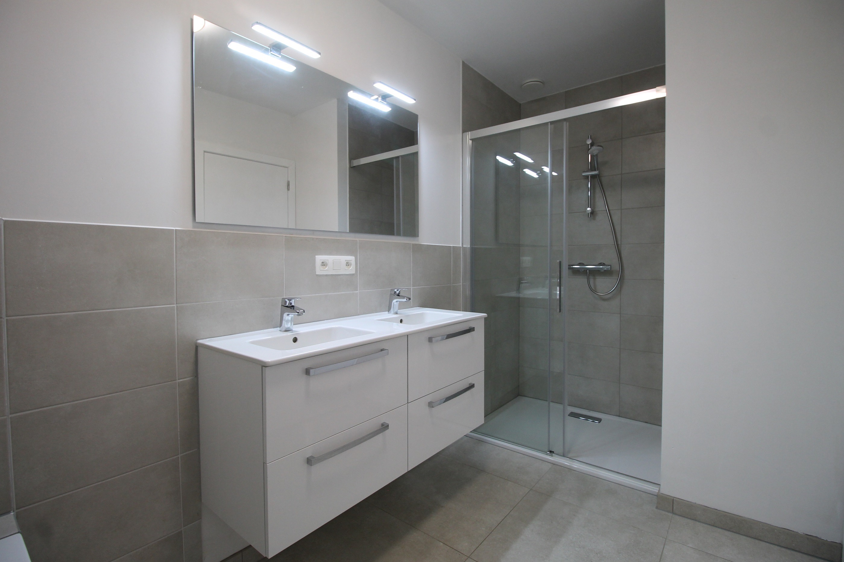 Very low energy costs due to optimal insulation. Energy label A. Natural gas heating with underfloor heating. Solar cells on roof. Basic rent 1400 euros per month. Three months deposit on blocked bank account at KBC.