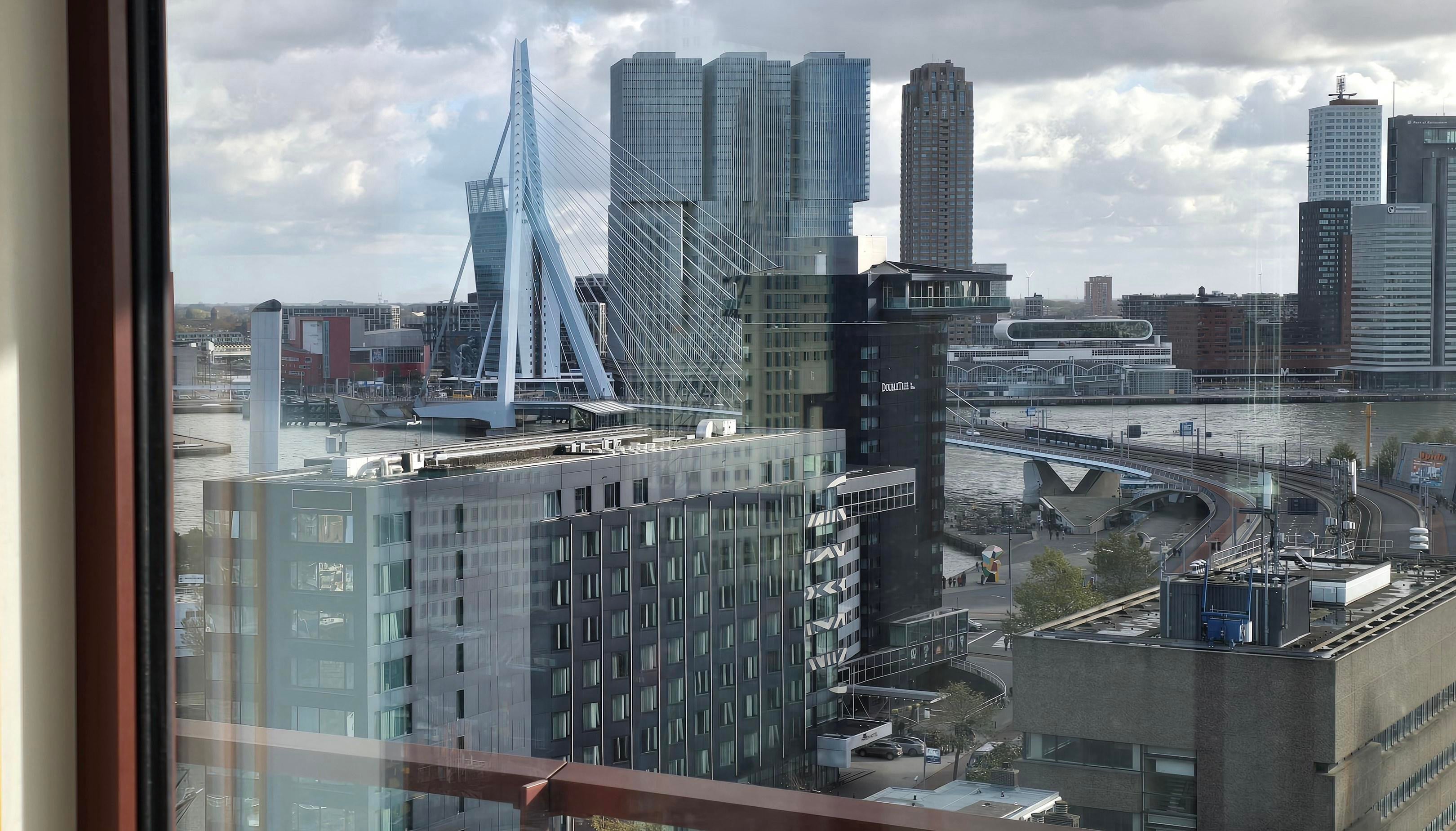 ● USP 1: the view - panoramic, unobstructed views from the living room, both bedrooms and the XL corner balcony of the Erasmus Bridge, the Maas River, the Leuvehaven, the Euromast and the skyline.