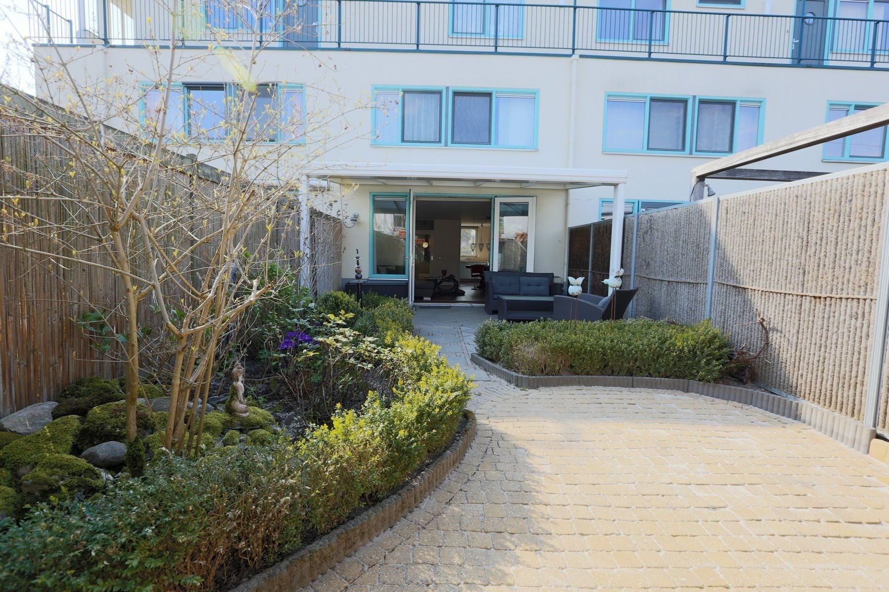 In the front garden (17 m²) you can enjoy the evening sun. This is also a spacious and private outdoor space, neatly tiled with a cozy look by an apple tree. In the hall on the first floor there is a toilet with fountain, the meter cupboard and the stairs to the second floor. The bottom of the stairs is efficiently used as a pantry, accessible from the living room.