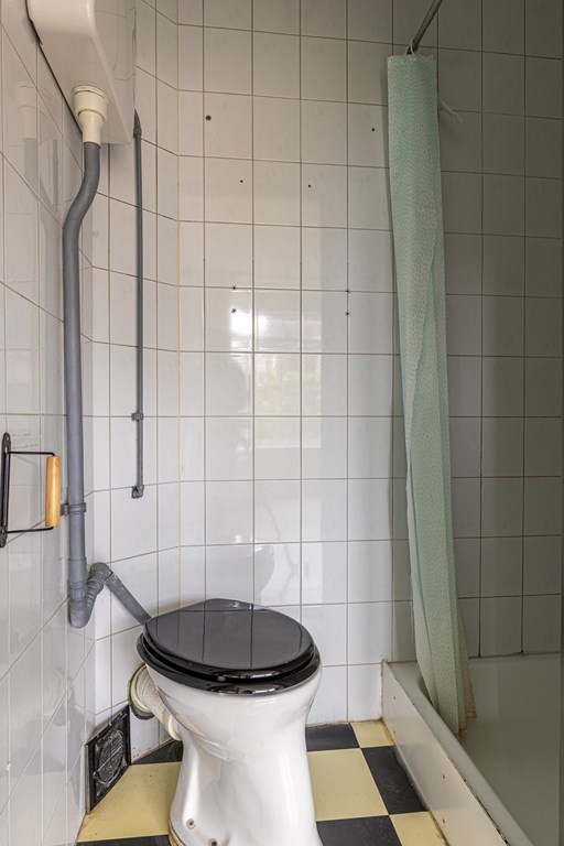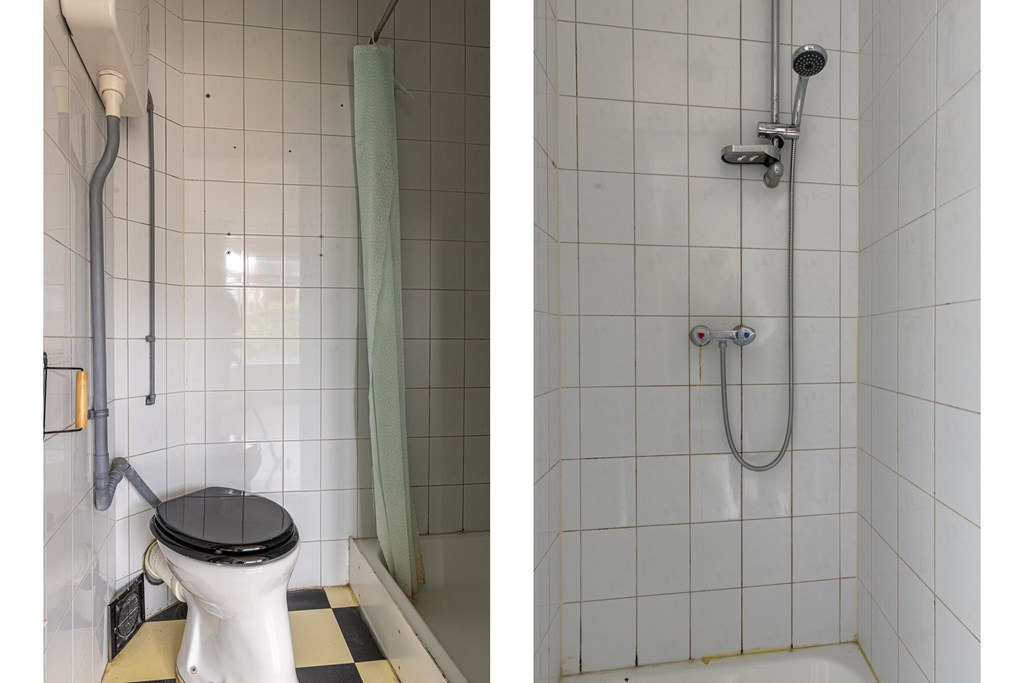 Once inside you enter a multifunctional room, where there is enough space for a bed, a couch and possibly a desk. The living room offers a nice view of the street, which makes for a nice, bright living space. On your left you will find the door to the bathroom, which is equipped with a toilet and a modern shower stall.