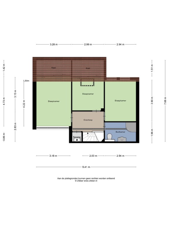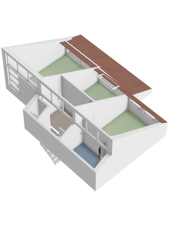 The bedrooms (respectively 12 and 14 m2) are all spacious and are largely equipped with partitions for extra storage space.
