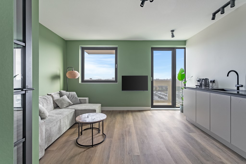 For rent from Januari: a bright and new one-bedroom apartment in the exclusive and sustainable residential tower The Robin in Bajeskwartier. You'll be one of the first residents of this fully furnished apartment! Ideal for an expat or a couple. Model A rental contract applicable: minimum 1 year lease.