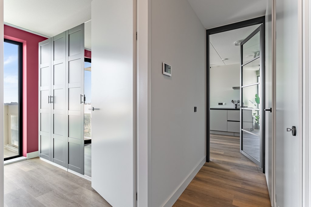 The construction of The Robin is inspired by the shape of the original Bajestoren, with a layered landscape of roof gardens all around. Impressive and a real eye-catcher is the communal atrium upon entering the complex. This space reminds you of the historical character of the site and offers a spacious feeling. This apartment located on the ninth floor has two private balconies, a luxurious open kitchen, a brand new bathroom, an A++ energy rating, underfloor heating and cooling and fiber optic internet. In short: the ultimate balance between sustainability and contemporary living comfort. The costs for heating will therefore be significantly lower than for similar apartments.