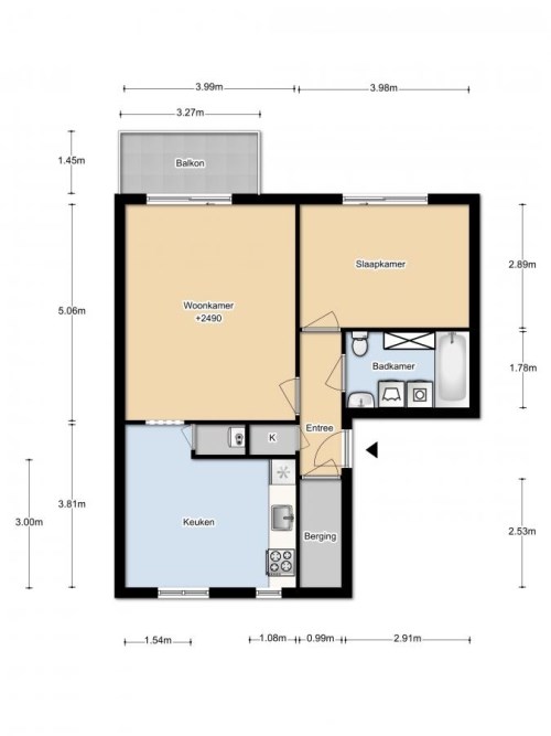 60m² - 2 kamers