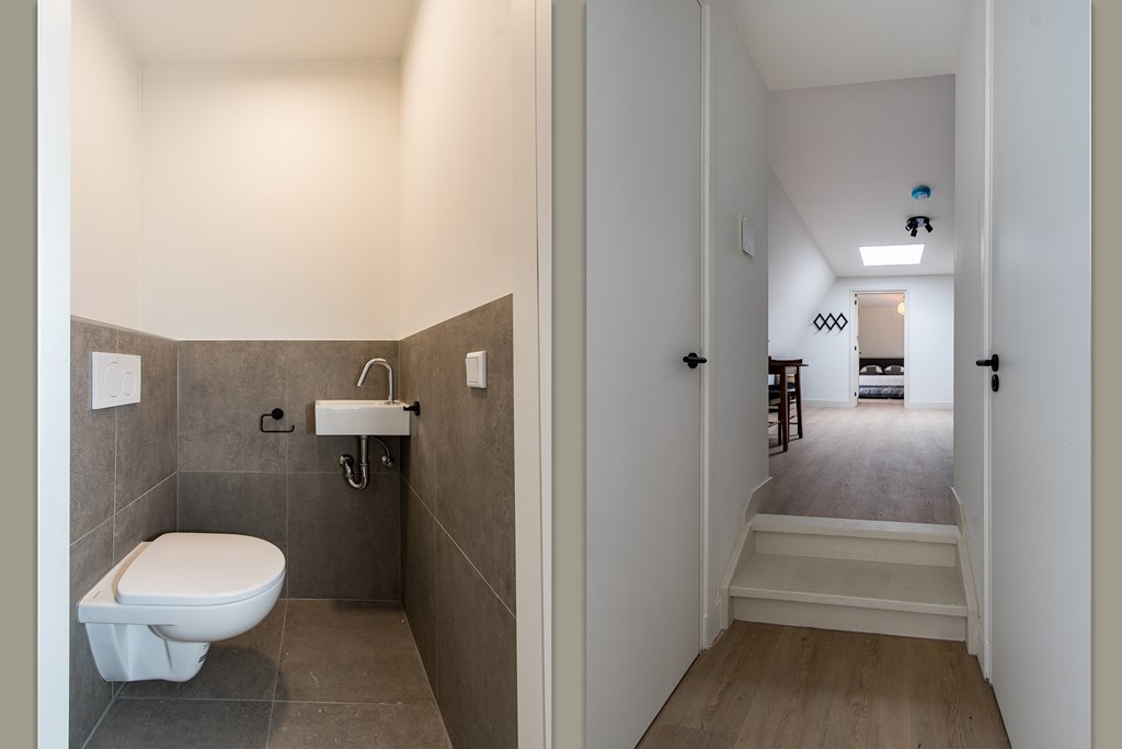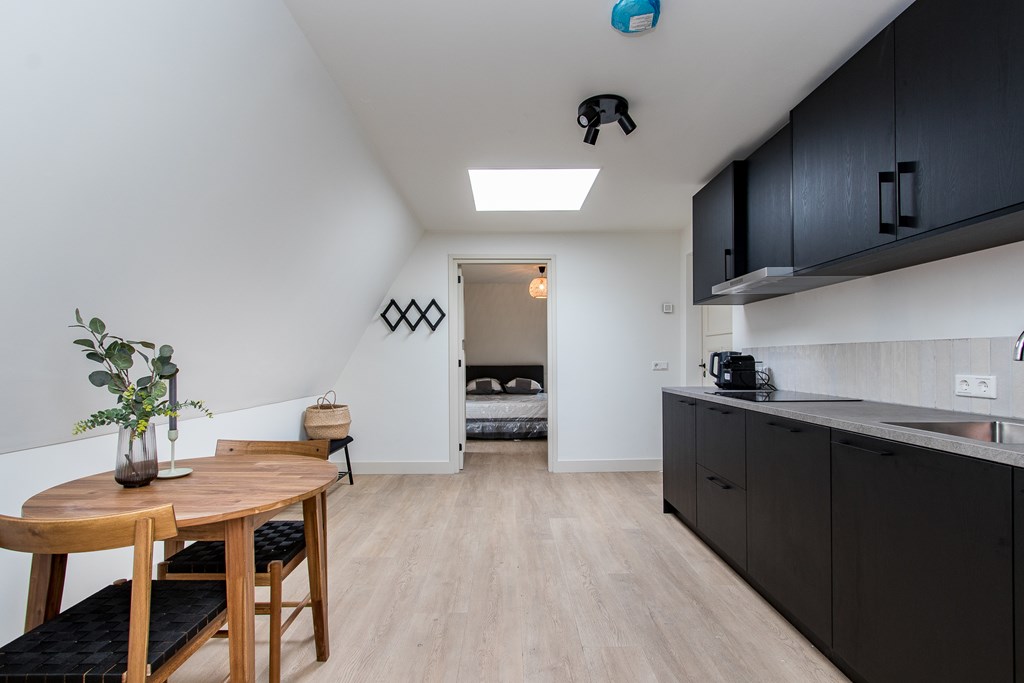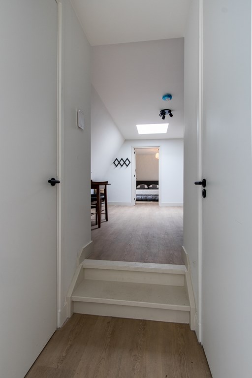 Stap binnen in deze stijlvol ingerichte bovenwoning en ontdek de entree die leidt naar de woonkeuken, compleet met vaatwasser, koelkast en inductiekookplaat - perfect voor het bereiden van uw favoriete gerechten.