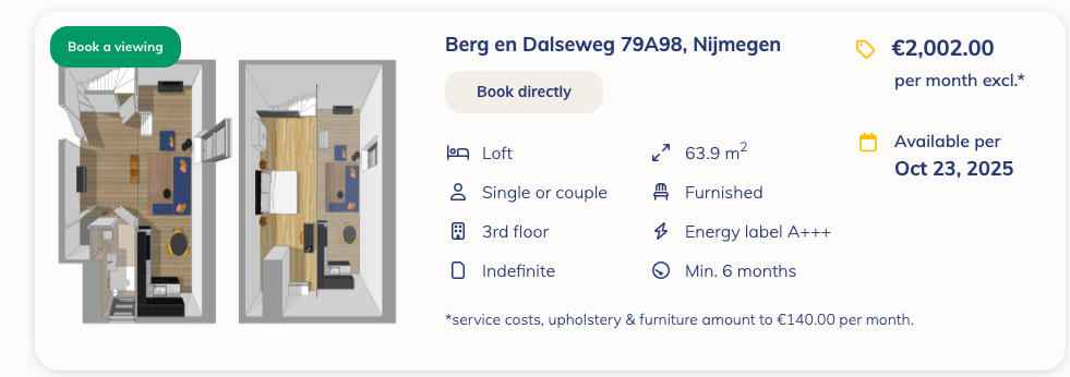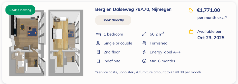 Berg en Dalseweg 79A70 from 23-10-25 / basic rent: € 1771