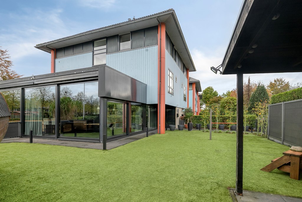 Deze moderne uitgevoerde woning (bouwjaar 1993) onderscheidt zich door haar speelse split-level indeling, grote raampartijen en strakke architectuur, waardoor het hele huis baadt in het licht. De royale tuin op het zuiden biedt volop zon en beschikt over een sfeervol overdekt terras aan het water – een heerlijke plek om te ontspannen en te genieten van lange zomeravonden.