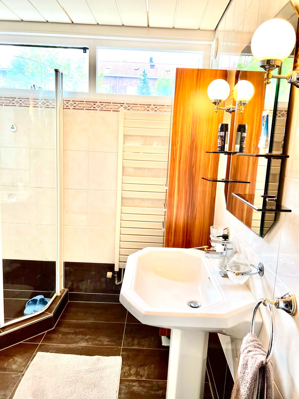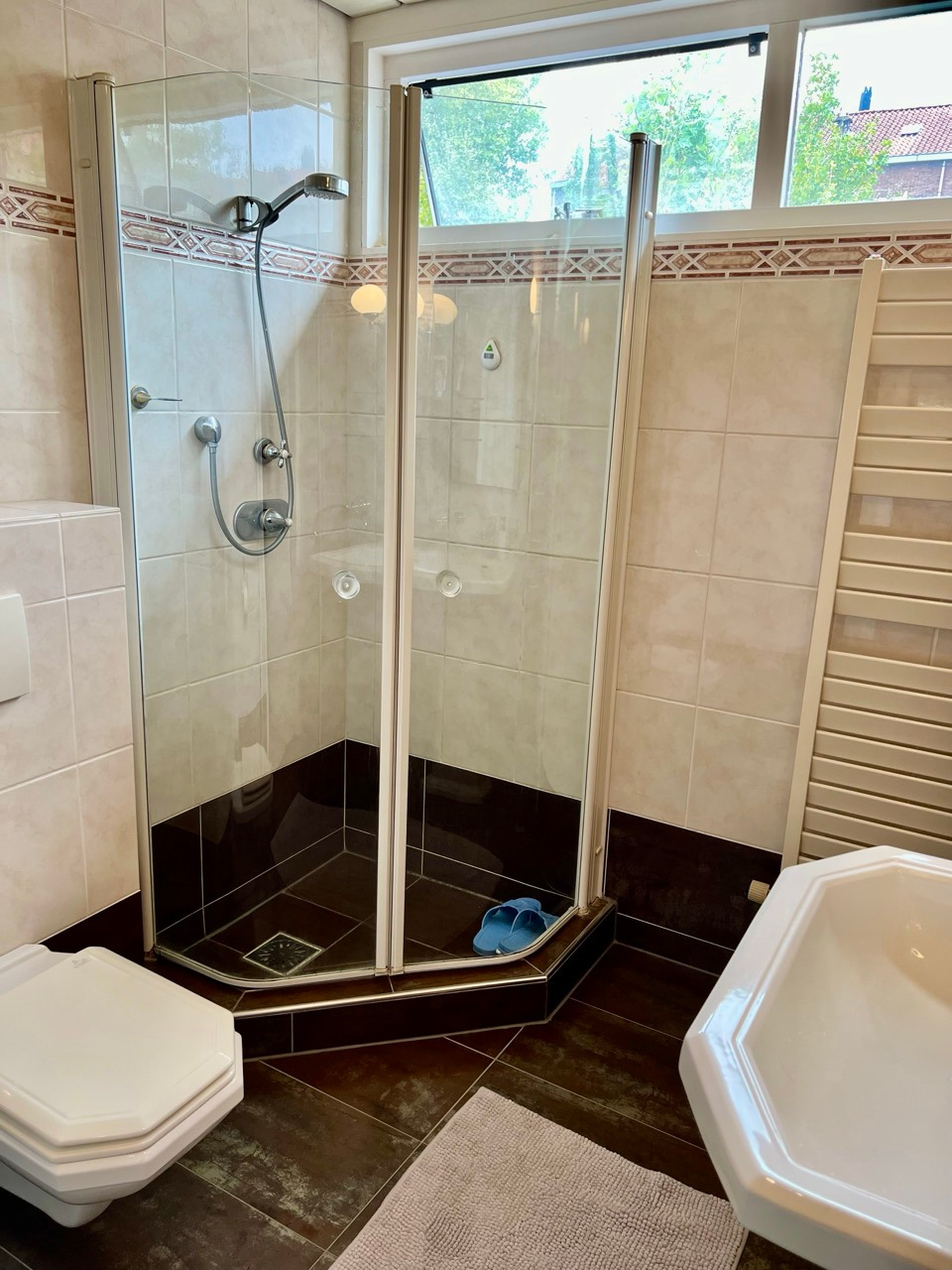 - Badkamer met douchehoek, wastafel, meubel en 2e toilet