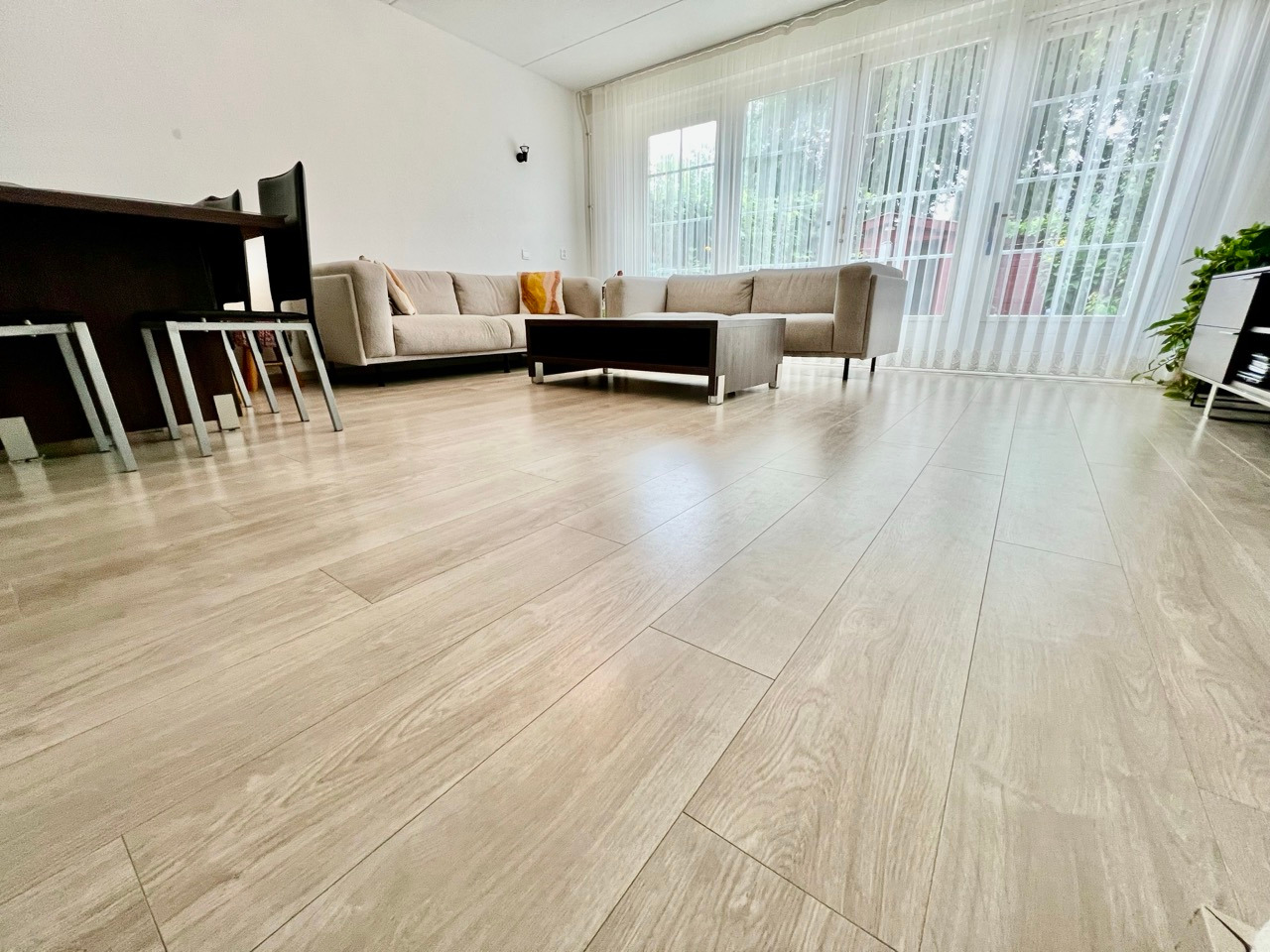 - Royale woonkamer met veel natuurlijk licht door grote ramen