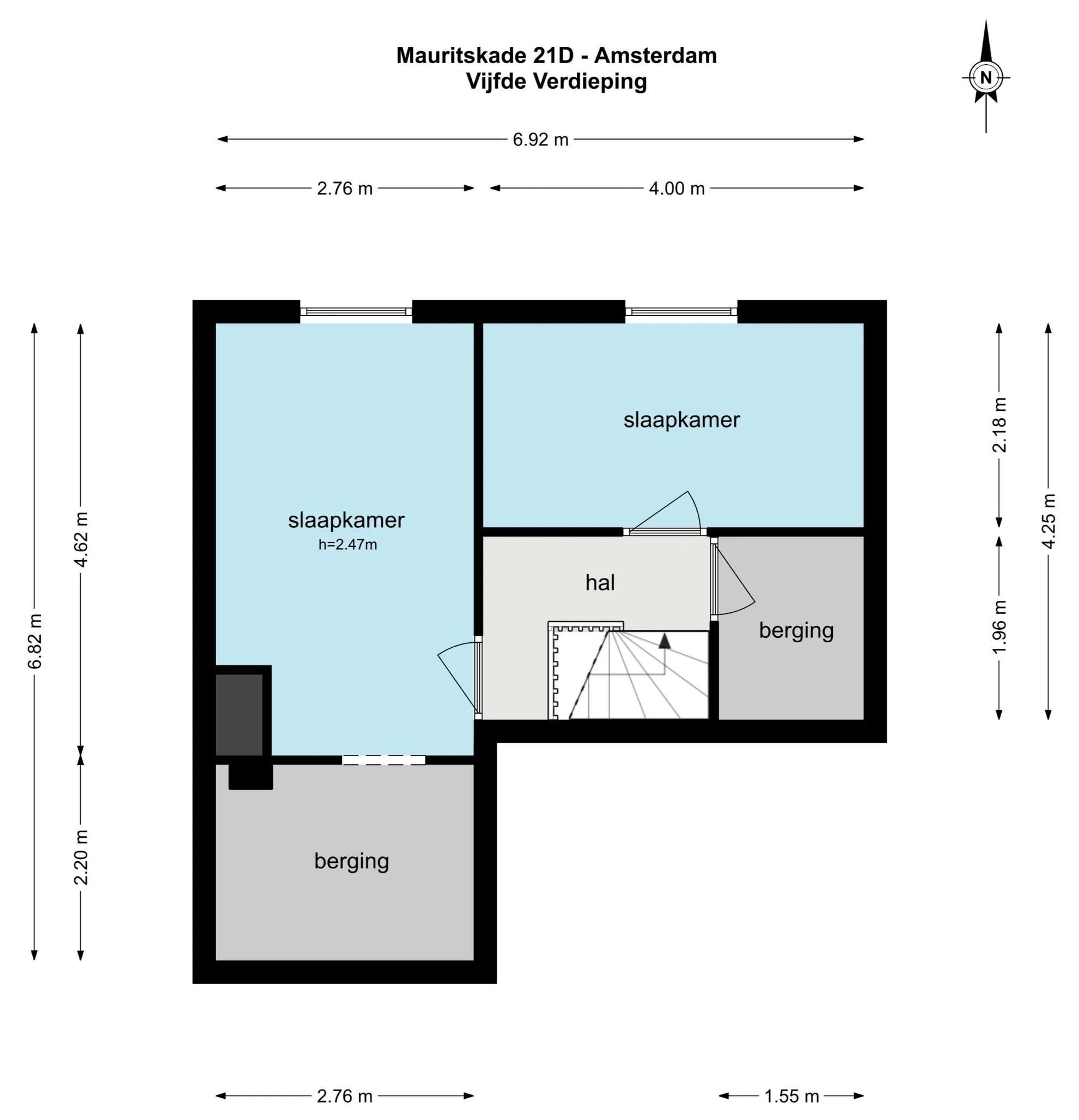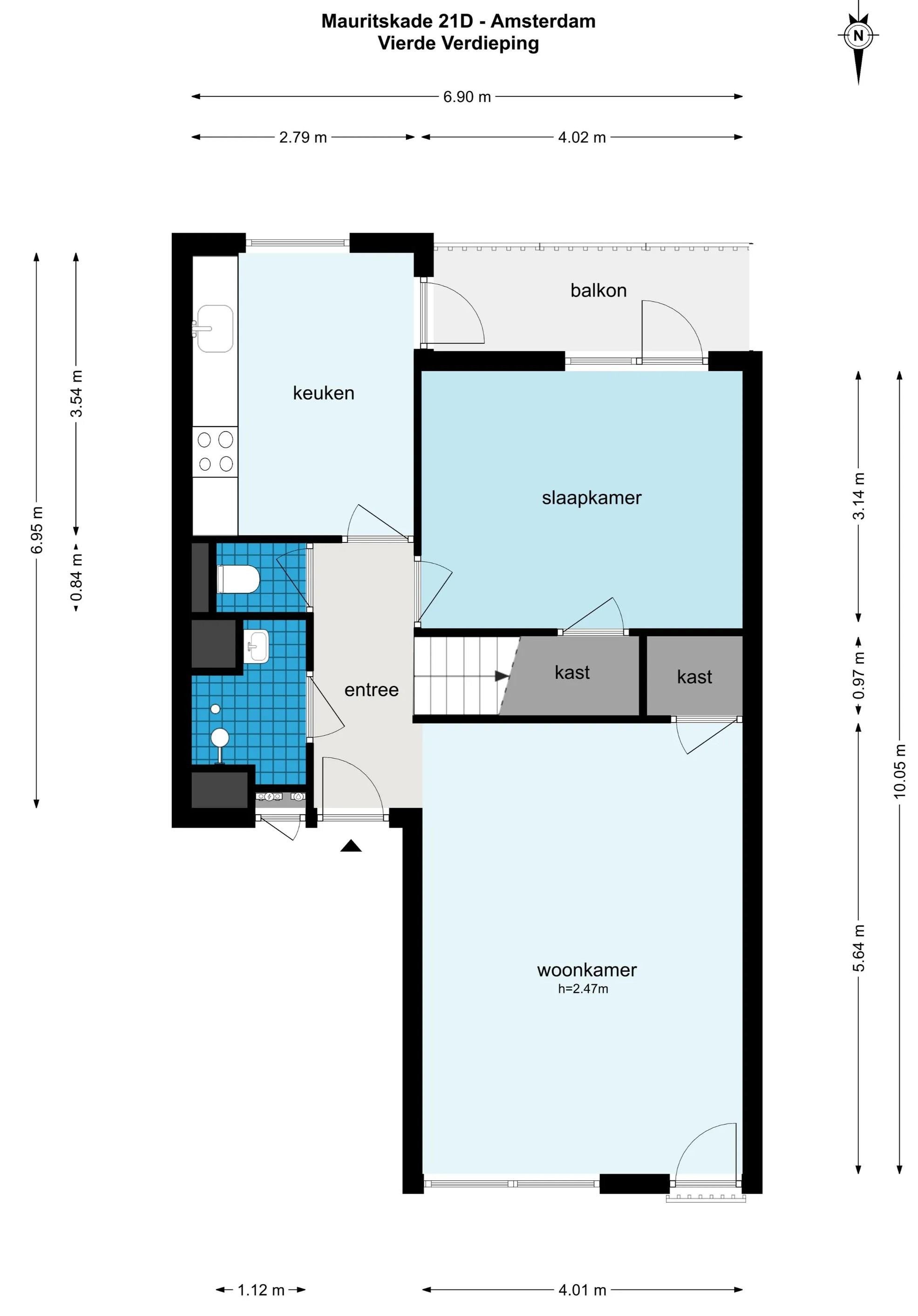 Het appartement is gelegen op de vierde en vijfde verdieping.