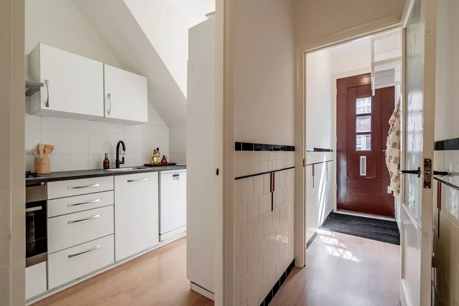 Vanuit de stijlvolle entree kom je in de hal die toegang geeft tot alle vertrekken van de woning. De gehele woning is voorzien van een nieuwe laminaatvloer en diverse ruime inbouwkasten. De moderne keuken aan de voorzijde is voorzien van diverse apparatuur zoals: vierpits gastoestel, oven, afzuigkap, vaatwasser en een koel/vriescombinatie. De ruime en lichte woonkamer met originele schouw loopt over de gehele lengte van de woning en biedt door middel van openslaande deuren toegang tot de tuin aan de achterzijde. De woonkamer beschikt nog over de originele en-suite deuren en ruime inbouwkasten. Aan de achterzijde van de woning bevindt zich de ruime slaapkamer die ook toegang geeft tot de achtertuin. De volledig vernieuwde badkamer is voorzien van toilet, design radiator, wastafel, een ruime hoekdouche en een wasmachine. De woning wordt verwarmd door middel van een cv uit 2018.