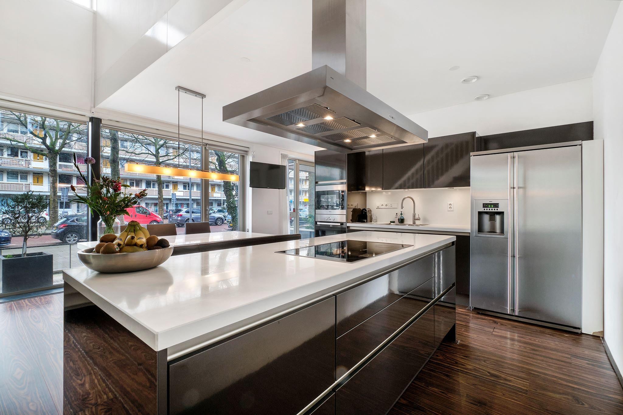 Luxe keuken met kookeiland en Amerikaanse koelkast