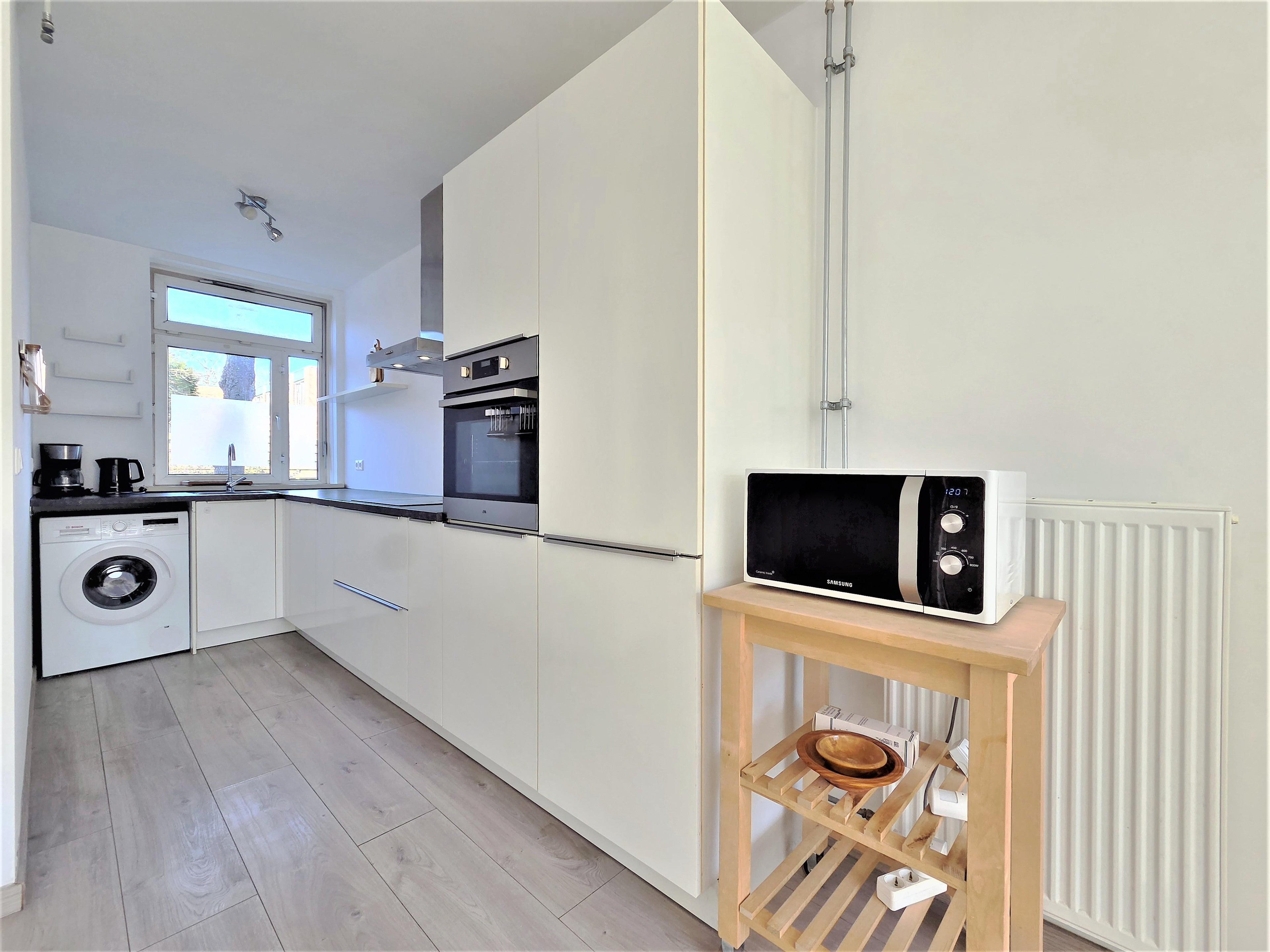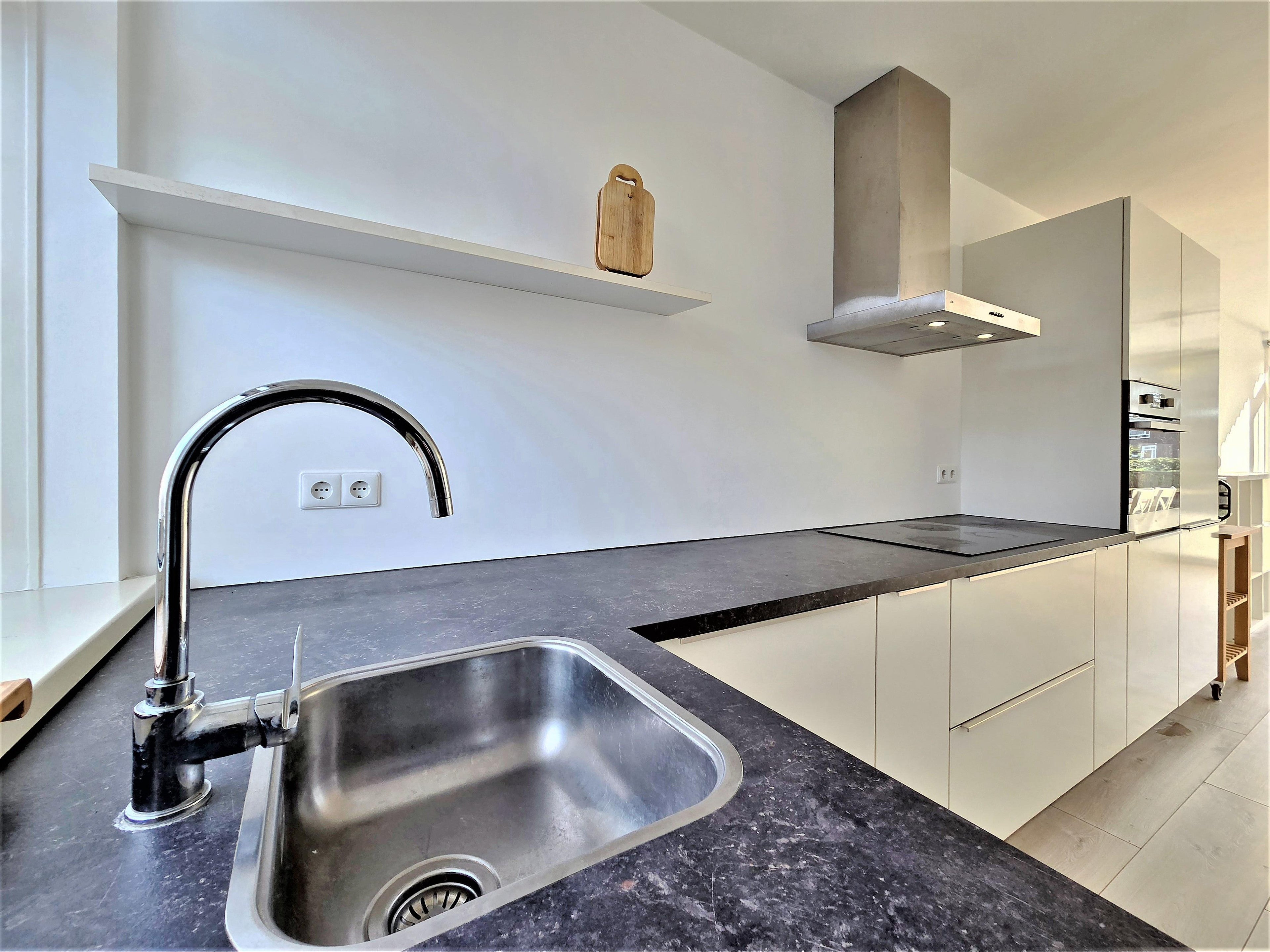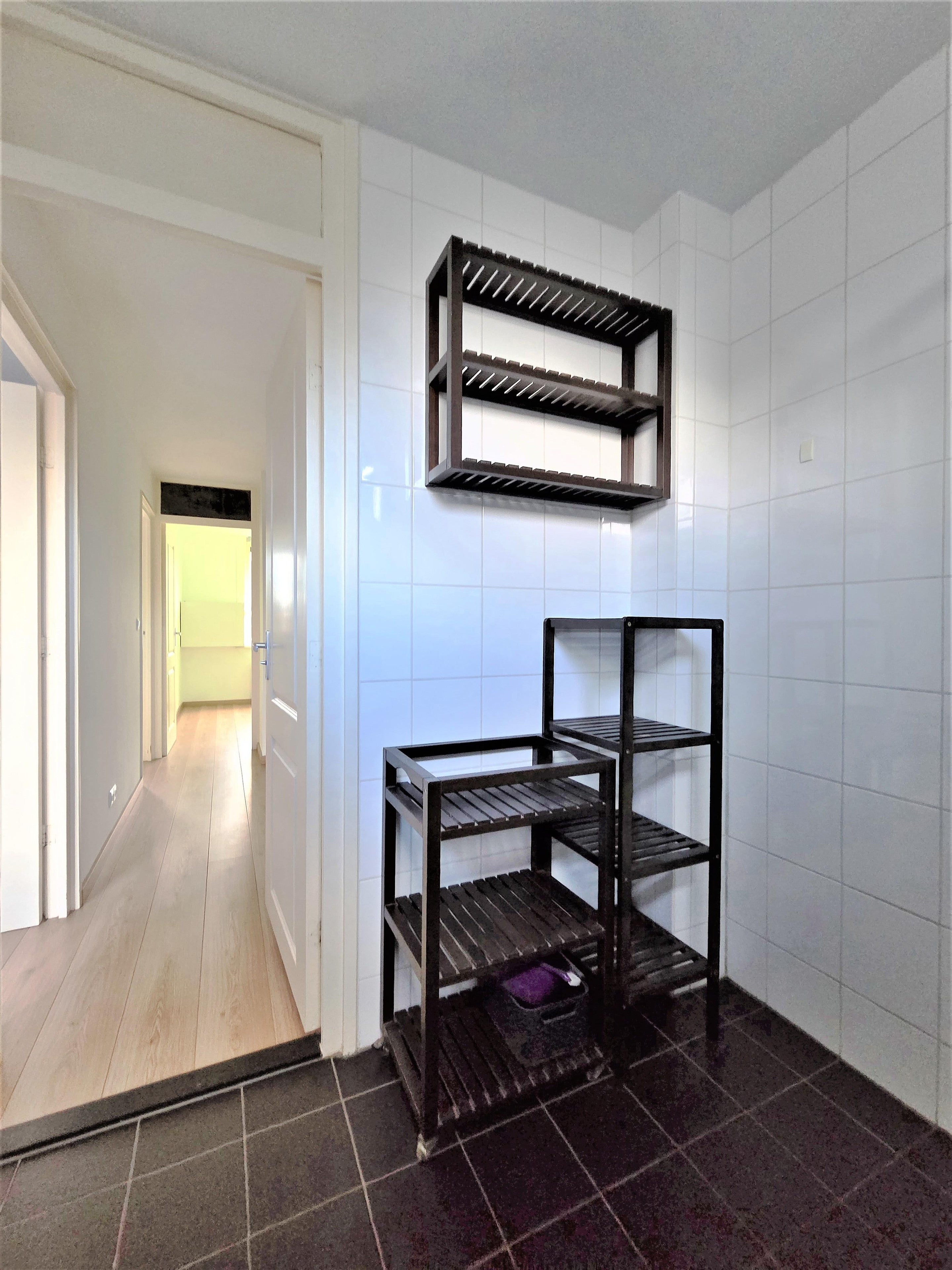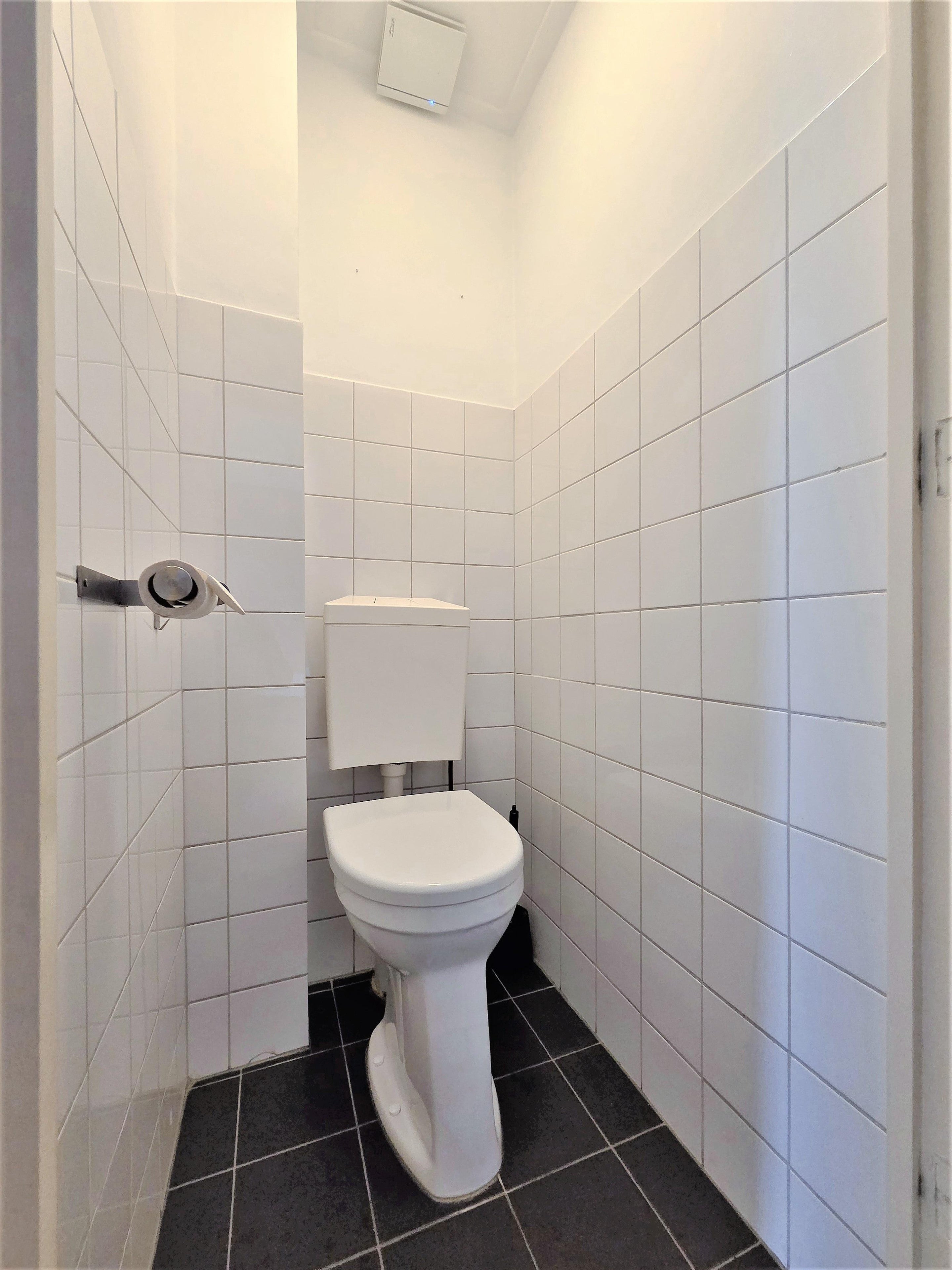 Via de voordeur bereik je de hal, met direct toegang tot een handige (opslag)ruimte en een eerste separate wc. De doorzonwoonkamer ligt aan de achterzijde en biedt toegang tot de verzorgde achtertuin van circa 45 m². Aan de voorzijde bevindt zich de relatief nieuwe open keuken, compleet met inbouwapparatuur en wasmachine. Onder de trap vind je nog een afgesloten bergkast.