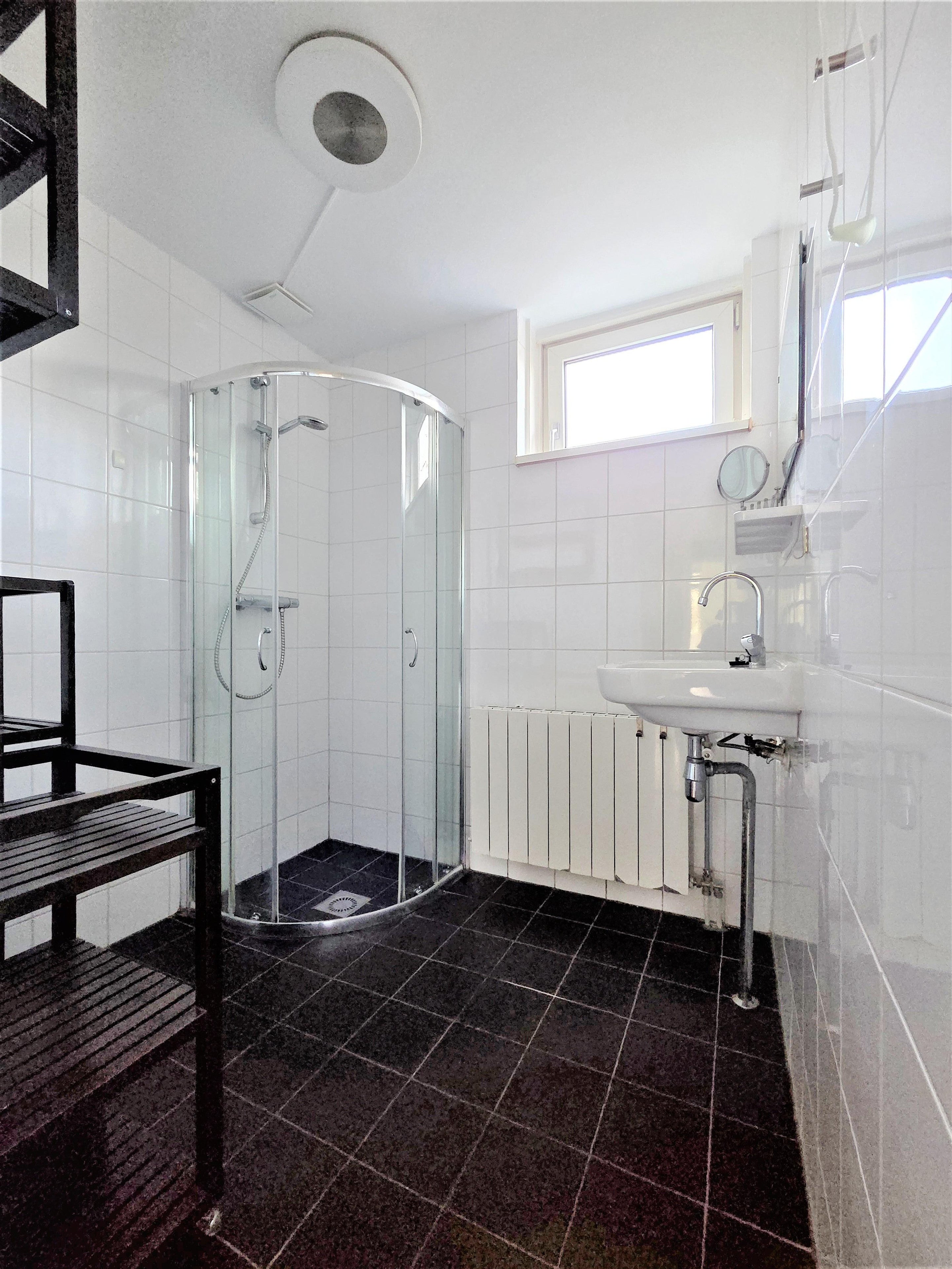 Op deze verdieping bevinden zich twee grote slaapkamers aan de voor- en achterzijde, plus een derde, kleinere kamer die uitstekend dienstdoet als werk-, logeer- of babykamer. De badkamer is voorzien van een comfortabele inloopdouche en wastafel. Daarnaast is hier de tweede separate wc, wat het woongemak verhoogt.