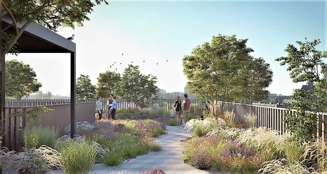 daktuin: de bekroning van het gebouw. Uitsluitend toegankelijk voor haar bewoners.