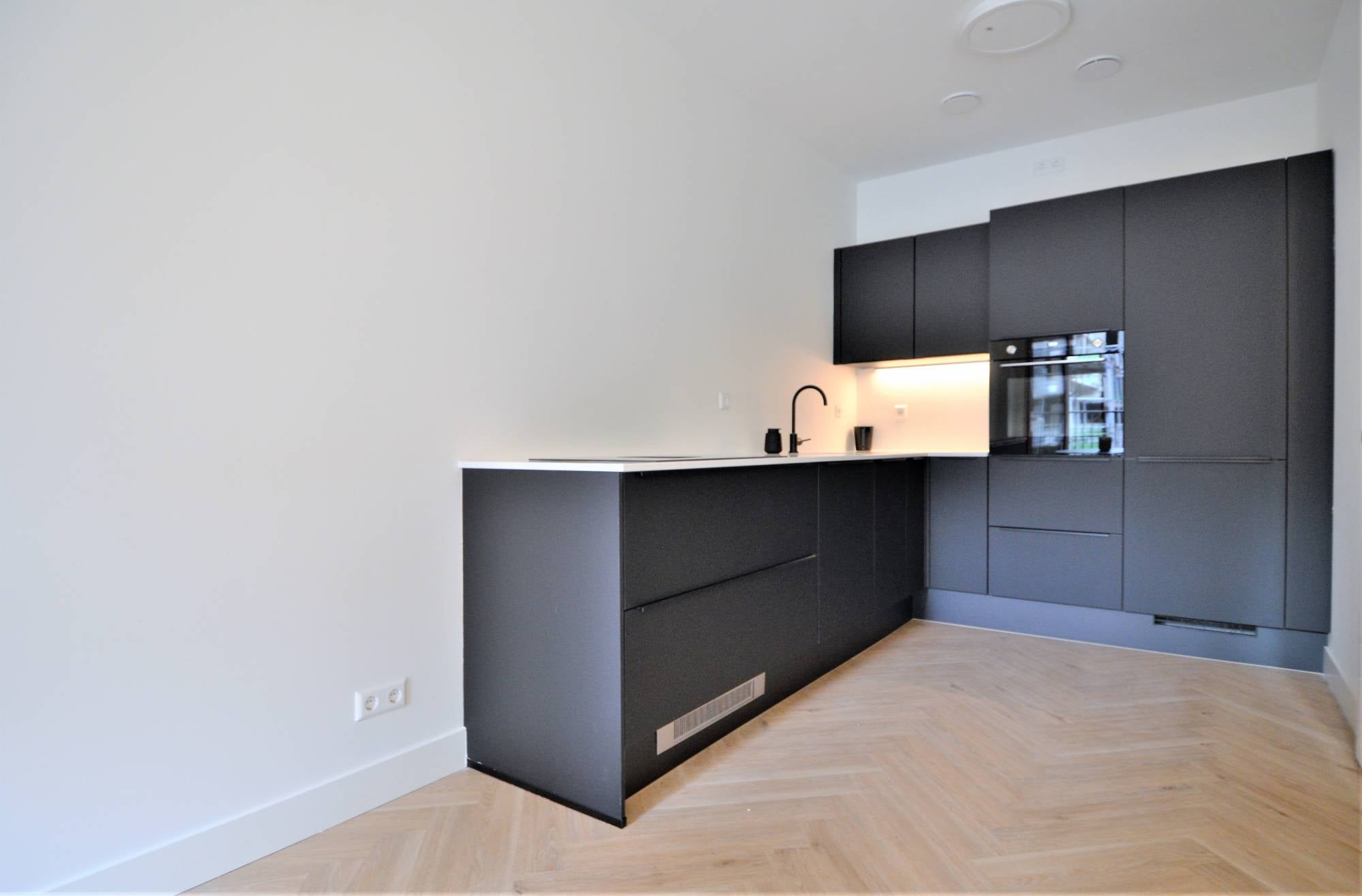 De L-vormige woonkamer, welke aan de stille binnentuin gelegen is, is compleet met de luxe open keuken in hoekopstelling. Daarnaast is de keuken erg praktisch, zo heb je de beschikking over een koelkast met vriesvak, combimagnetron, inductiekookplaat, afzuigkap en vaatwasser.
