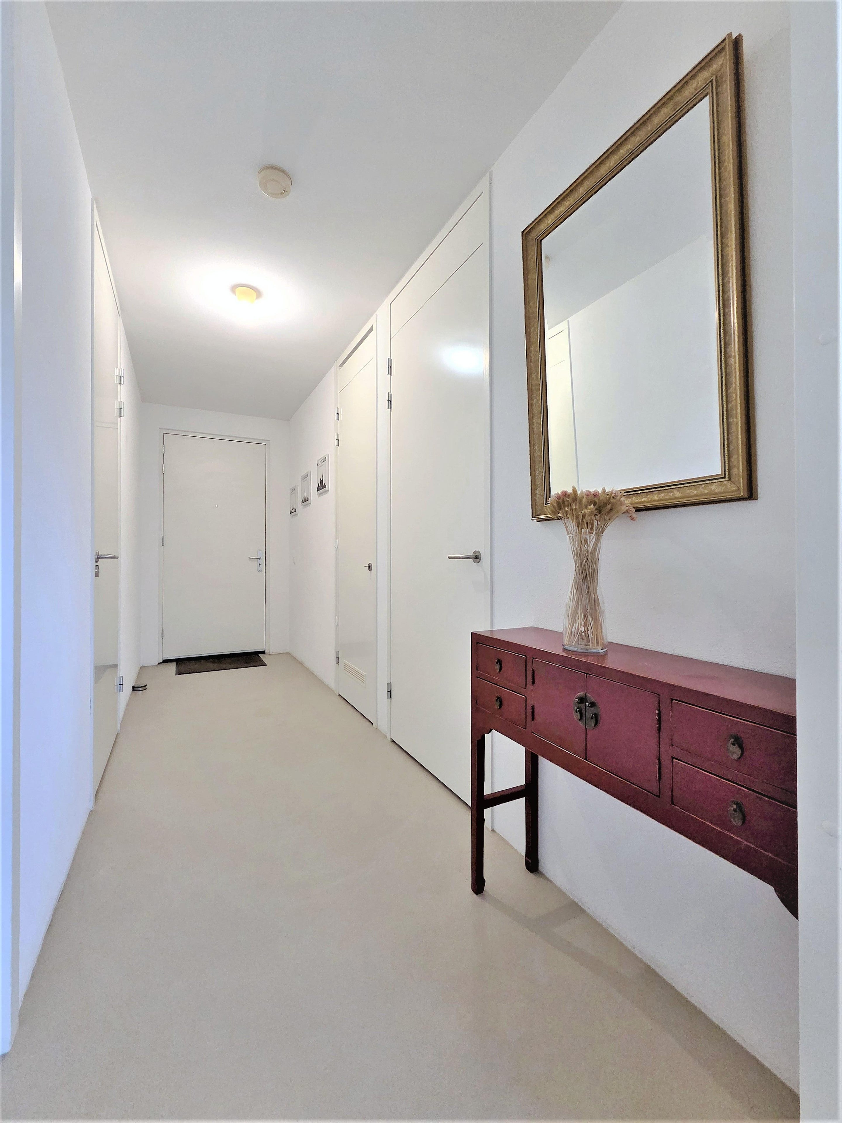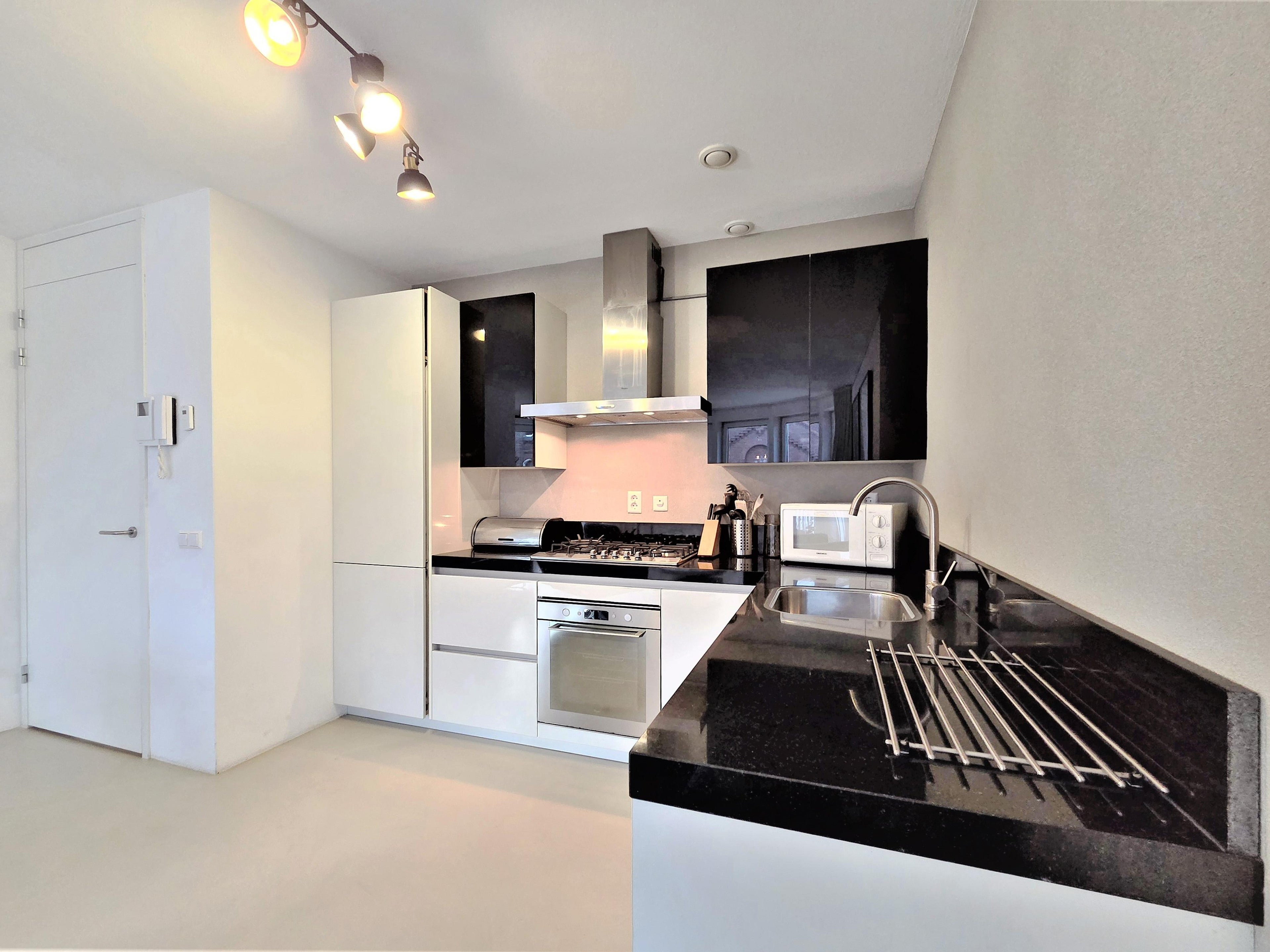 Met de lift bereikt u de derde verdieping. Bij binnenkomst betreedt u de lichte en sfeervolle living. De open keuken is voorzien van alle essentiële inbouwapparatuur en biedt voldoende werkruimte voor dagelijks koken. Vanuit zowel de living als de slaapkamer heeft u direct toegang tot het zonnige balkon op het zuiden.