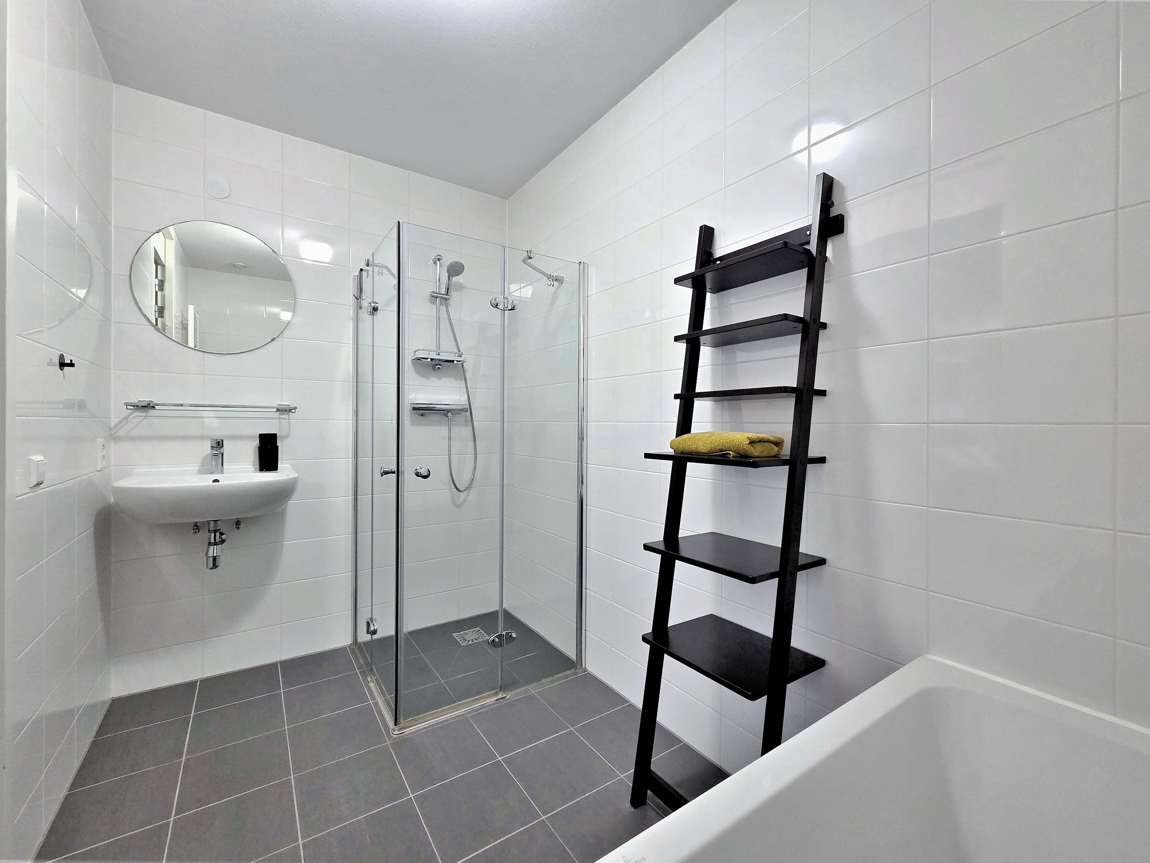 De zeer ruime slaapkamer biedt een rustige en aangename plek om te ontspannen. De ruime badkamer is uitgerust met een douche, ligbad en wastafel.