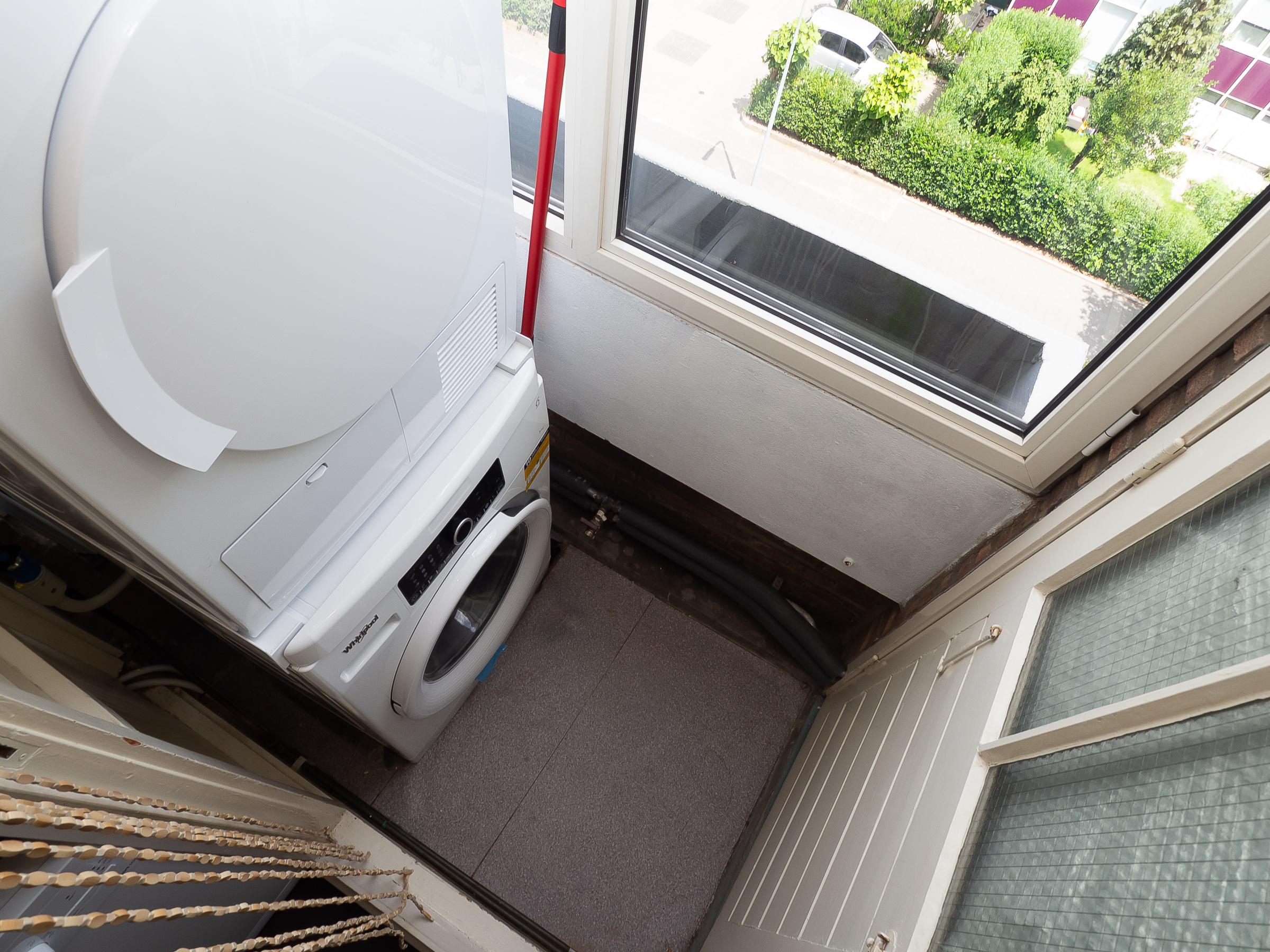 Verzorgde gemeenschappelijke entree, via lift of trappenhuis naar appartement gelegen op 3e verdieping. Entrée appartement. Ruime gang met toegang tot alle vertrekken. Aan de voorzijde gelegen ruime en door de grote raampartijen uitzonderlijk lichte woon-/eetkamer met toegang naar het zonnige balkon op het zuidoosten. Goed uitgeruste keuken met bijgetrokken balkon, diverse apparaten (kookplaat, afzuigkap, koel/vriescombinatie, magnetron, oven en vaatwasser, wasser end roger). Ruime hoofdslaapkamer met houten vloer, een kleinere tweede slaap-of studeerkamer. Badkamer met douche en wastafel, separaat toilet met fontein. Eigen berging in de onderbouw.
