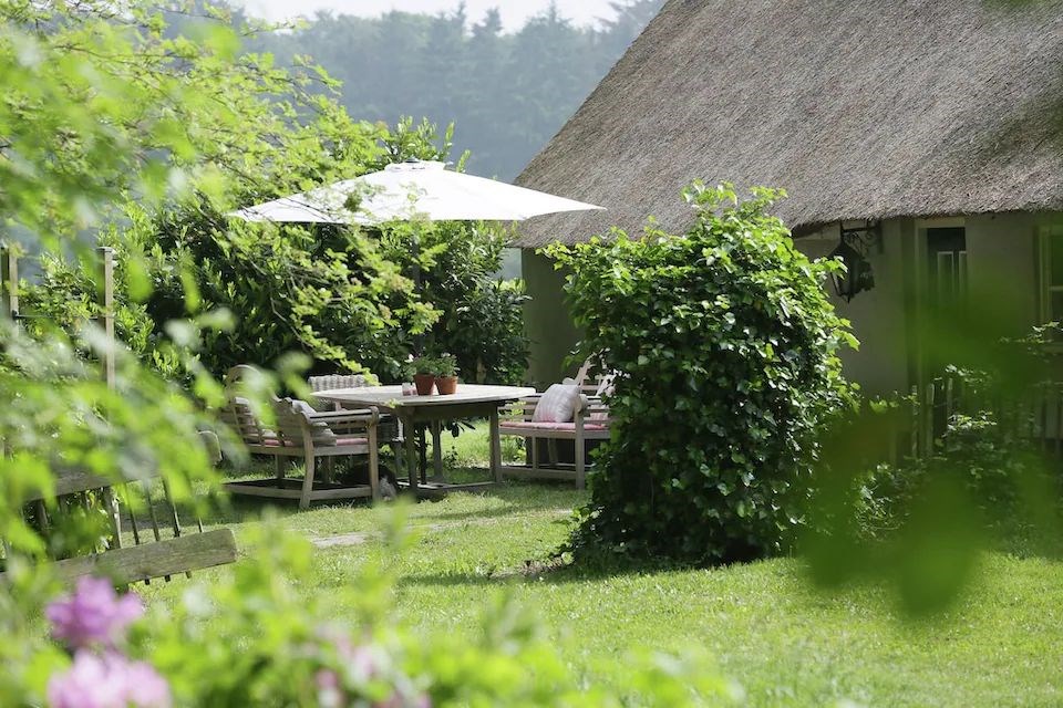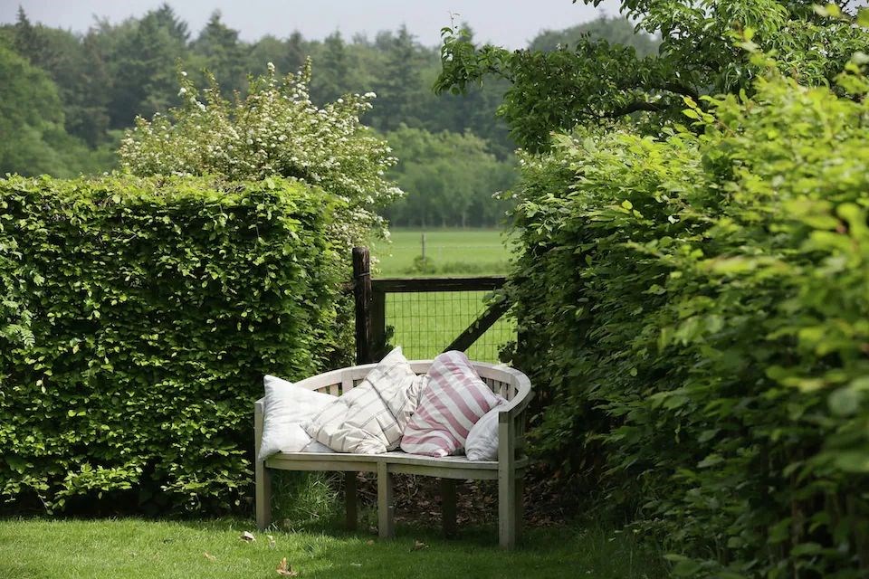 De afgesloten tuin heeft een eigen toegangshek en grenst aan het natuurgebied. De tuin wordt onderhouden door de verhuurder.