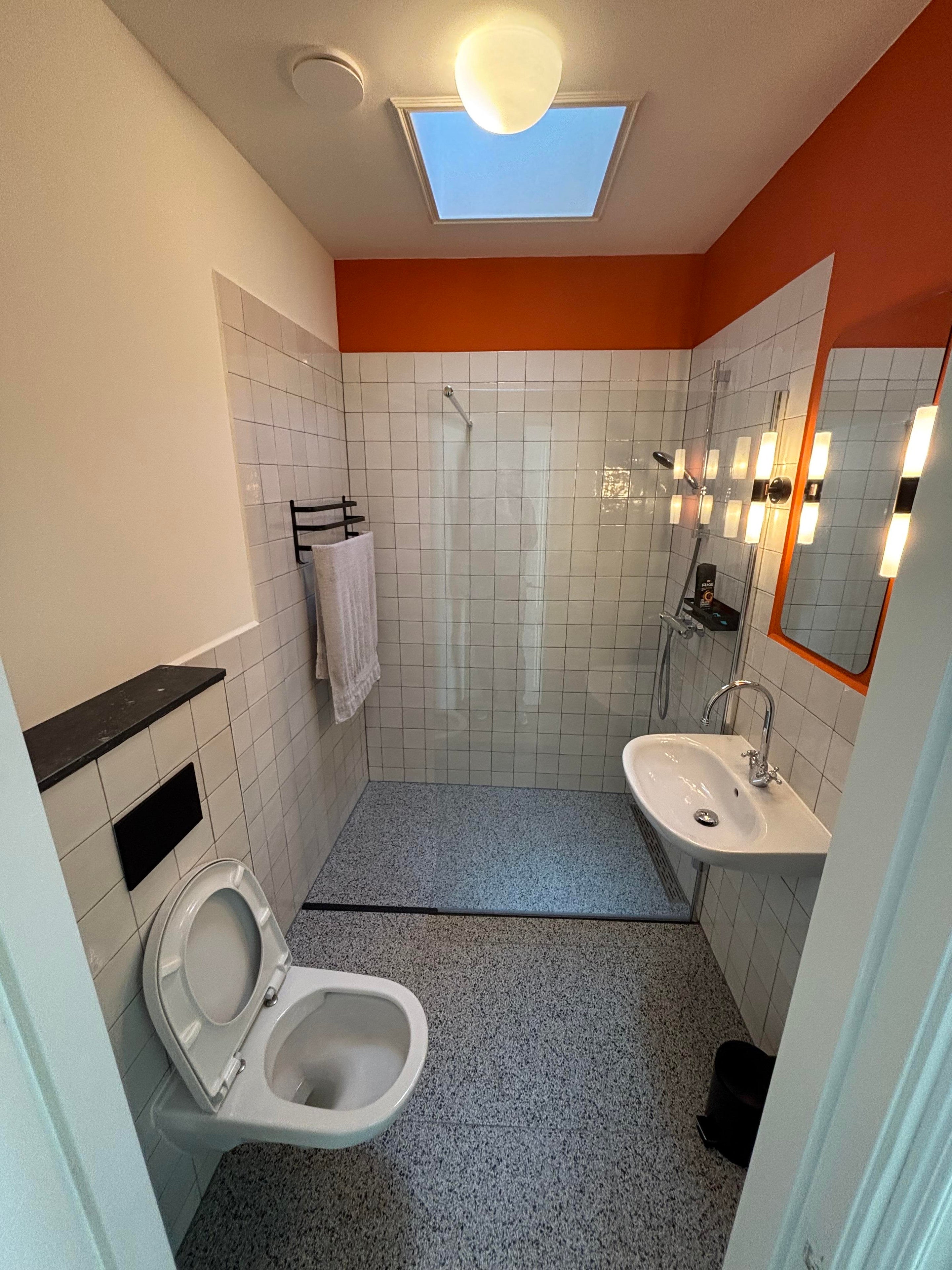 - Badkamer met inloopdouche, wastafel en toilet + extra toilet in de hal