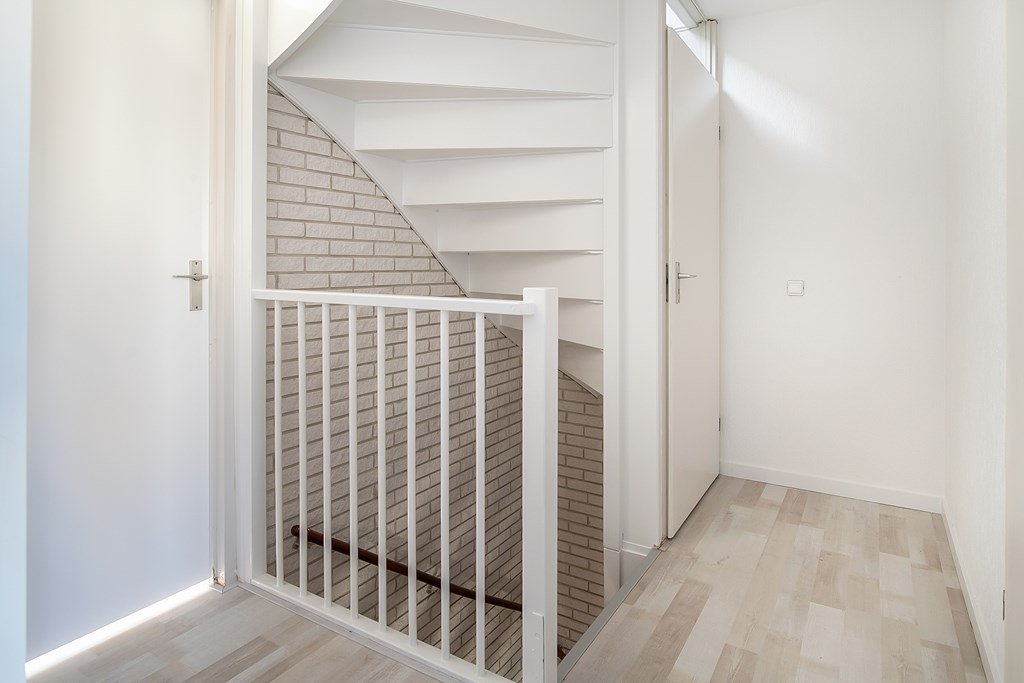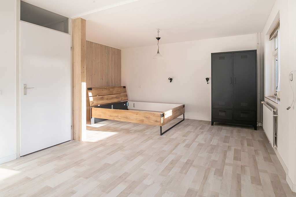 Overloop met toegang tot twee ruime slaapkamers (voorheen drie). Beide kamers zijn voorzien van lattenbodems (matrassen worden door huurder verzorgd) en kledingkasten.