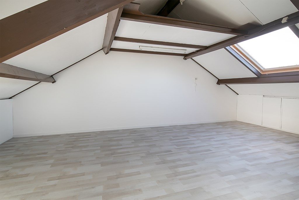 Daarnaast is hier een ruime derde slaapkamer met dakraam en extra bergruimte op de vliering. Een was-/droogcombinatie is aanwezig.