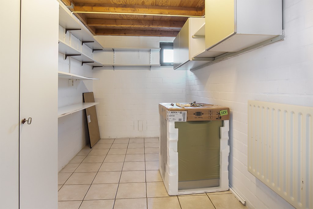 Bereikbaar via een vaste trap. Hier bevinden zich de cv-ketel, wasmachine-aansluiting, mechanische ventilatie-unit, een gootsteen en praktische bergruimte achter de knieschotten.