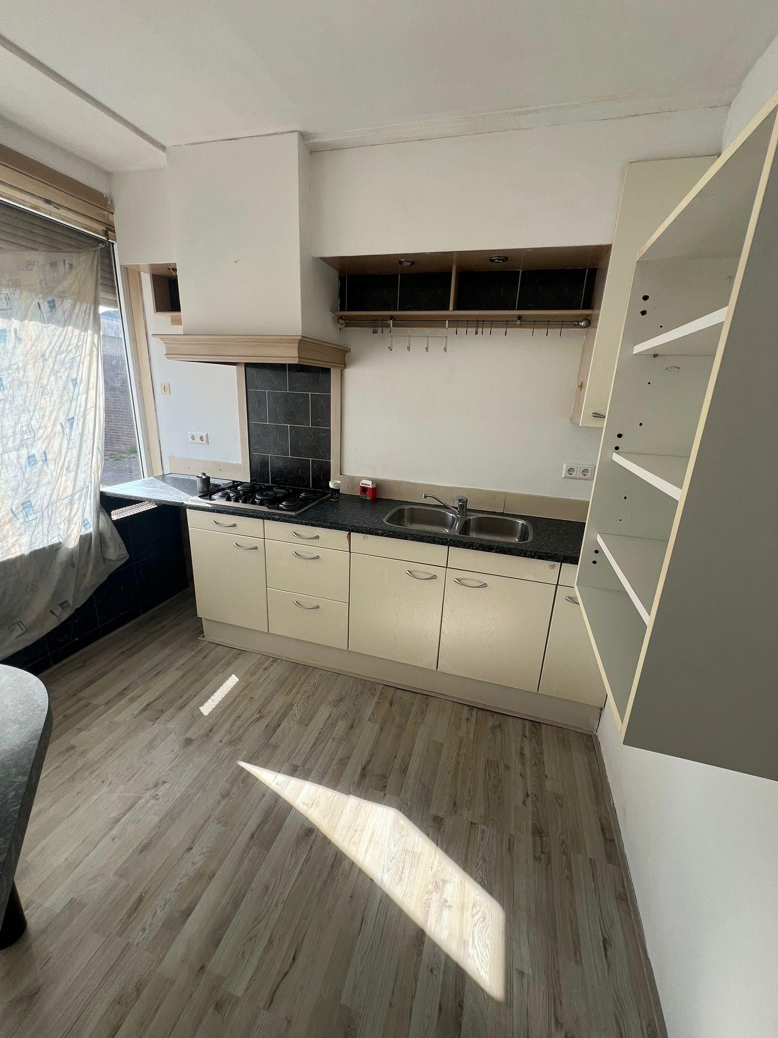 Slaapkamer is aan de voorzijde. De slaapkamer is voorzien van een vaste kast. De keuken bevind zich aan de achterzijde van het appartement met nette eenvoudige keukeninrichting. Tevens een vaste kast met opstelling van de cv-combiketel. de berging heeft ook een achteruitgang welke uitkomt op een fraai stuk gemeente grond