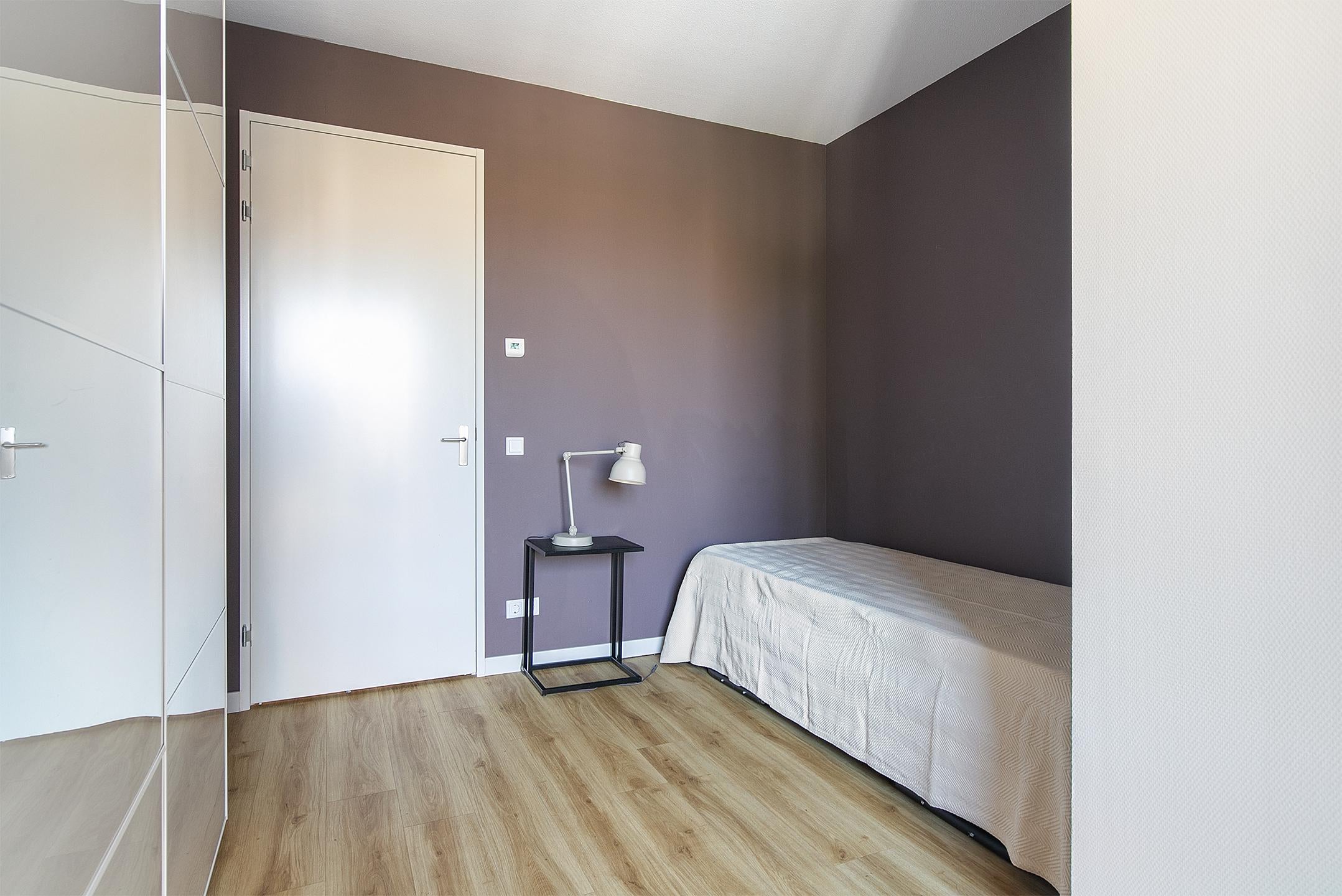 * *Slaapkamer 2* met een *dubbel enkelbed* (kan worden ingericht als twee losse eenpersoonsbedden) en eveneens een kledingkast