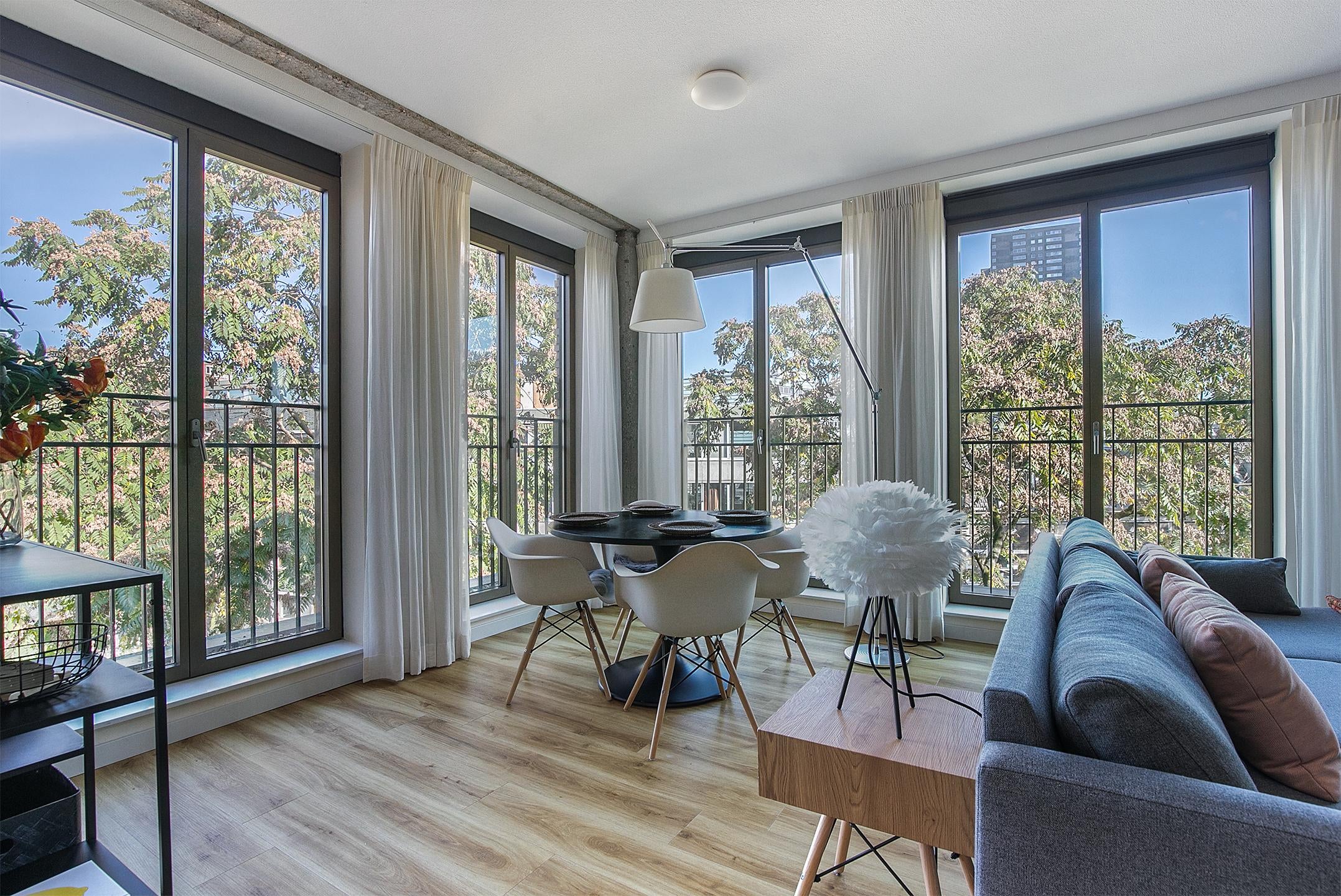 Per *1 december 2025* (eerder in overleg) komt dit *fraaie en luxueus gemeubileerde hoekappartement* beschikbaar in het geliefde *Scheepvaartkwartier. De woning bevindt zich op de **vierde (top)etage* van een modern complex uit *2018, **zonder bovenburen, en is dankzij de hoekligging **zeer licht. Ideaal voor een **expat, stel of alleenstaande*.