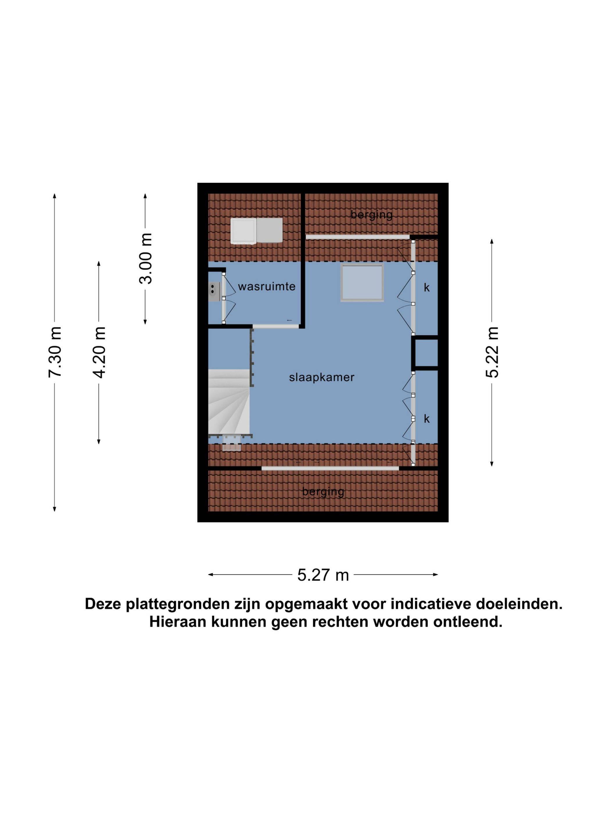 Strak afgewerkte slaapzolder met vaste bergruimte, dakraam en toegang tot de aparte stook-/wasruimte alwaar de CV combiketel Remeha HR 2019. De gehele etage is wederom voorzien van een nette laminaatvloer.