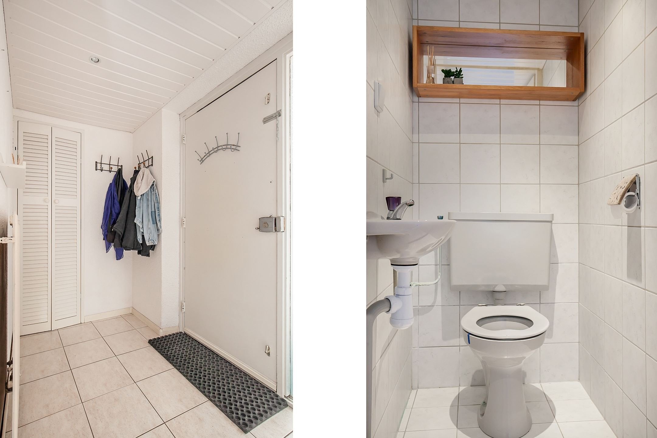 Begane grond met gemeenschappelijke trapopgang naar eerste verdieping, vervolgens: