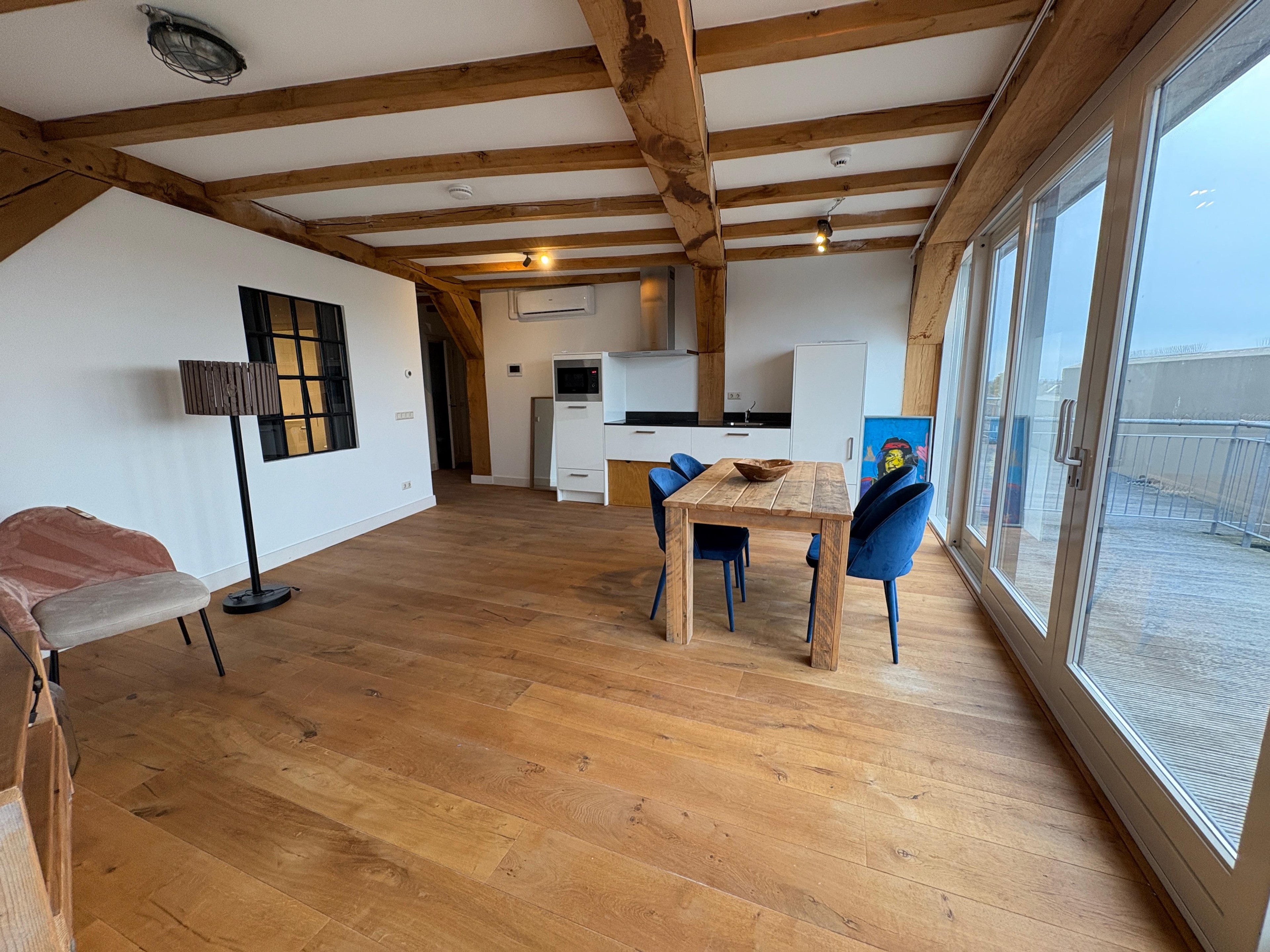 Prachtig pakhuis appartement aan de Zaan te huur. Per 1 december beschikbaar voor short stay verhuur: ruim en volledig gemeubileerd appartement (70 m²) met dakterras (17 m²).