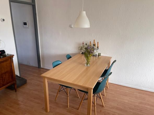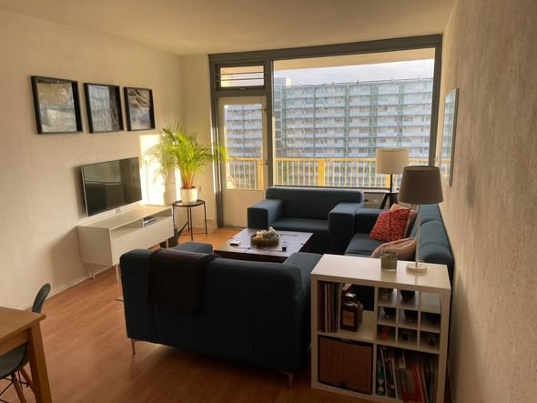 We hebben een ruime woonkamer, keuken, washok, balkon.