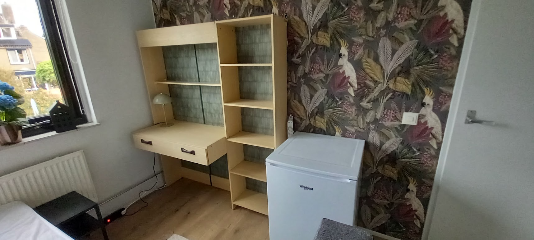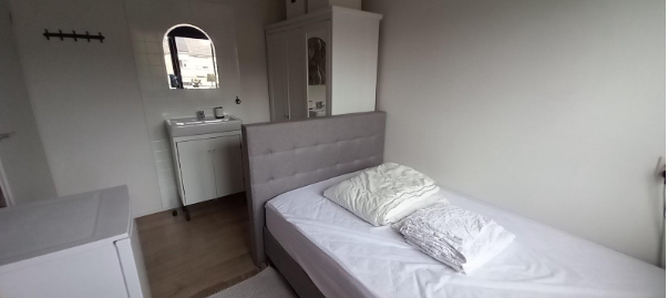 Nette kamer bij hospita. 10 minuten van Wageningen Campus en 15 minuten van station Ede-Wageningen. Kamer is voorzien van wastafel koud/warm water, 1.20 boxspring, bureau, koelkastje, kledingkast en elektrische verwarming. Gedeelde badkamer en gebruik van keuken. Incl. Wifi. Incl gebruik wasmachine en droger.