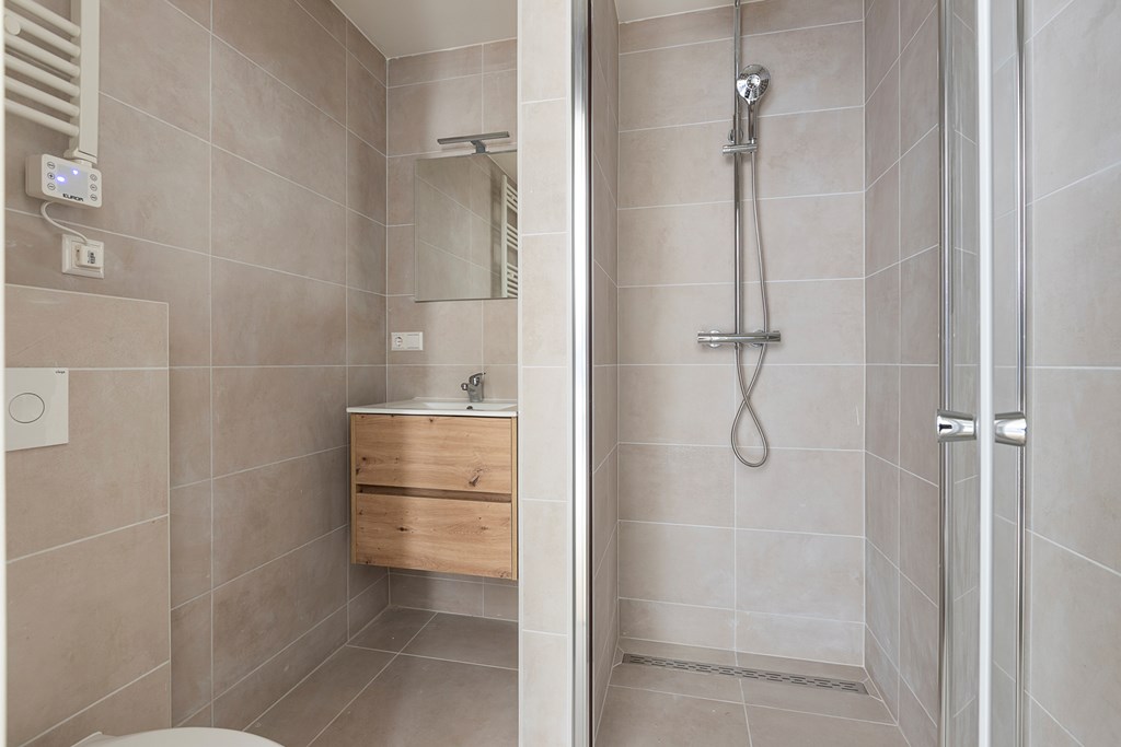 De kamer heeft een gebruiksoppervlakte van circa 13 m². De woning is volledig gerenoveerd en beschikt over een moderne keuken met diverse inbouwapparaten, zoals een koelkast, inductiekookplaat, afzuigkap, vaatwasser en combi-oven/magnetron. Ook de badkamer is keurig afgewerkt en uitgerust met een douche, toilet en een wastafel met meubel.