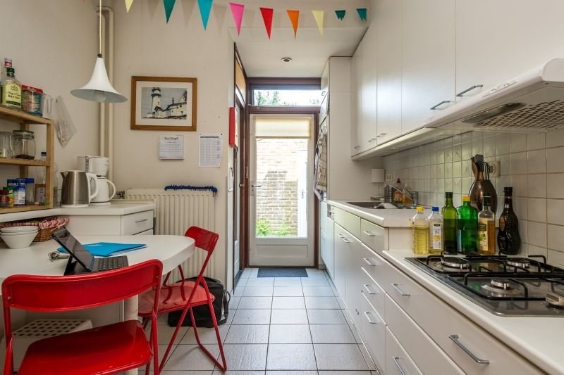 De kamer bevindt zich op de begane grond voorzijde. In het huis zijn in totaal 5 kamers voor studenten beschikbaar. Zij delen met zijn alle de keuken, badkamer, 2 separate toiletten en ruime tuin met afgesloten fietsenstalling.